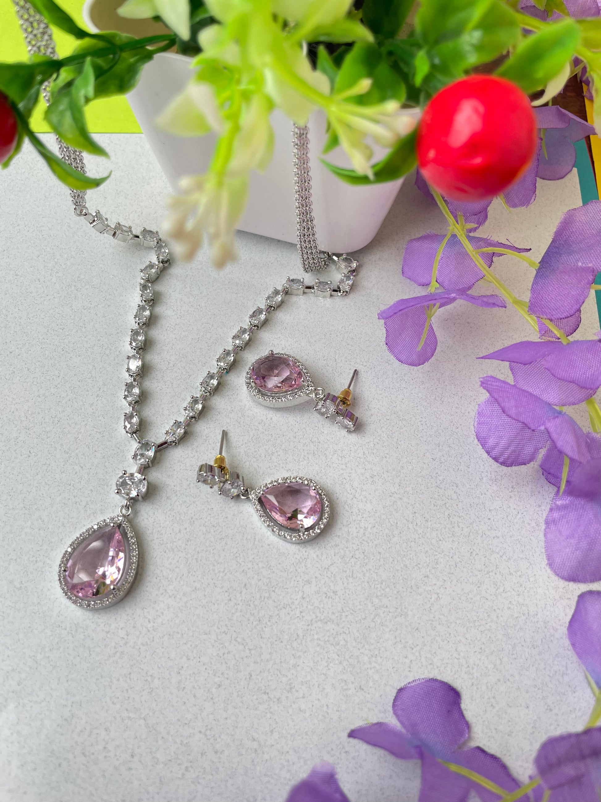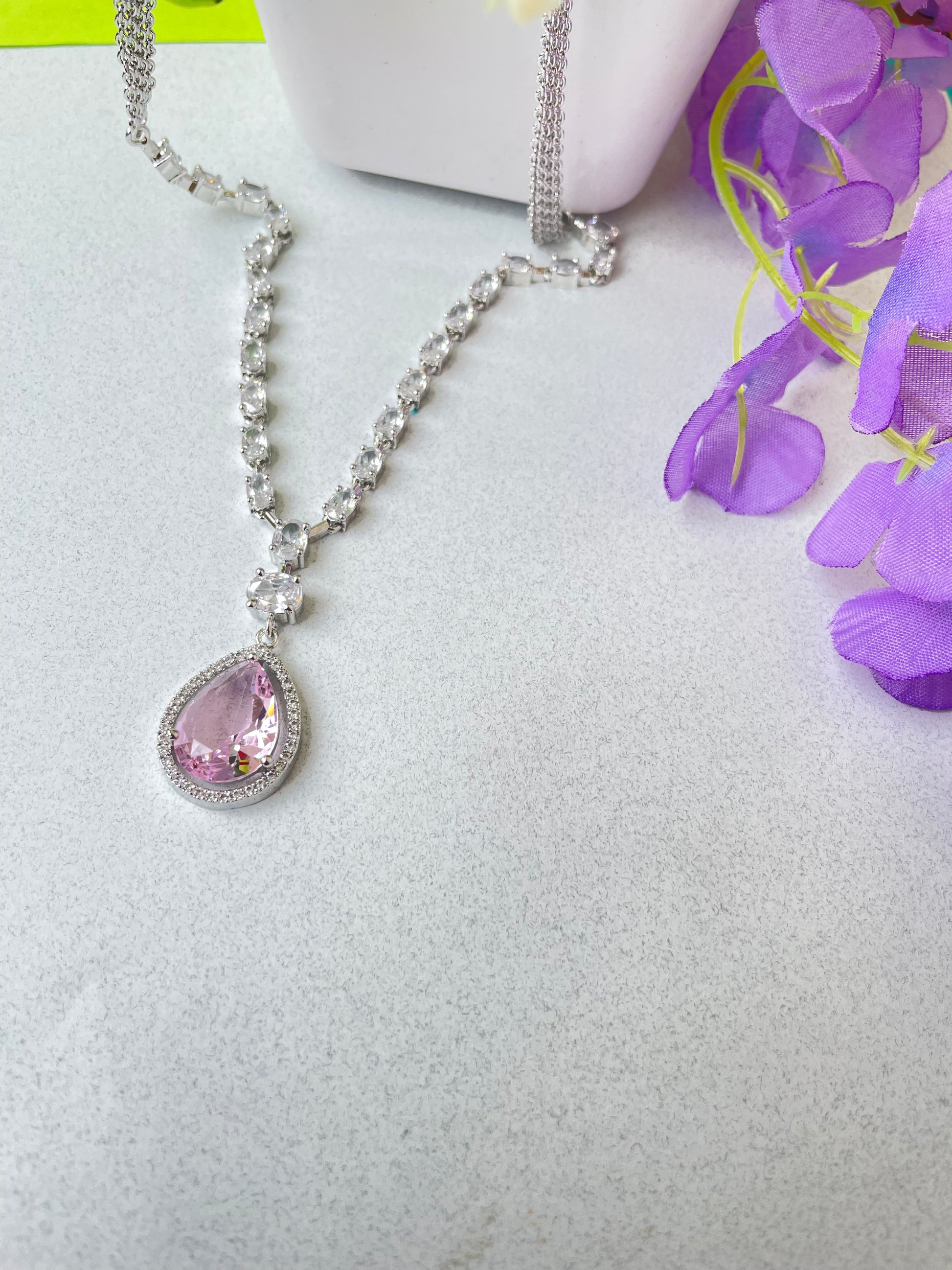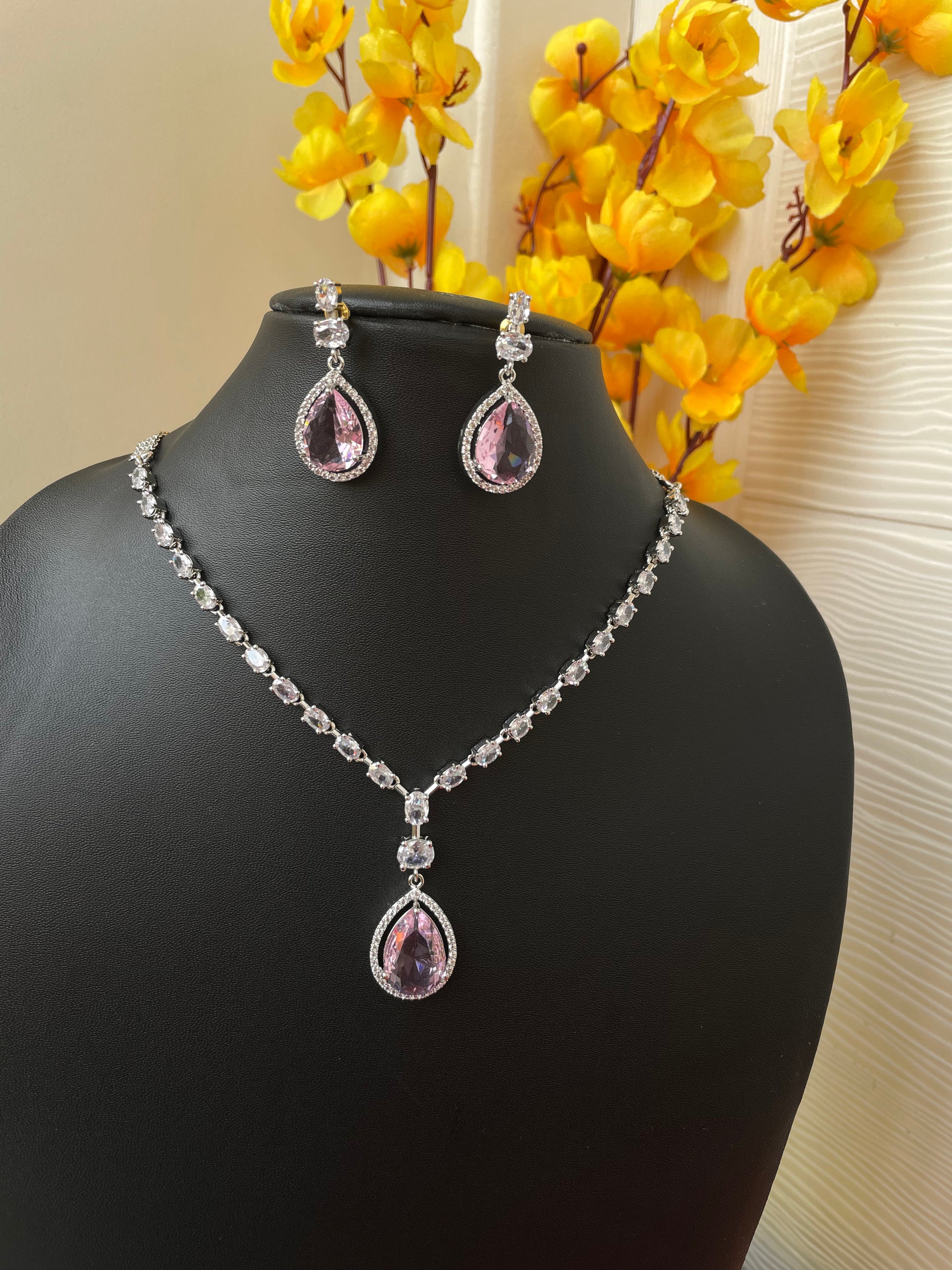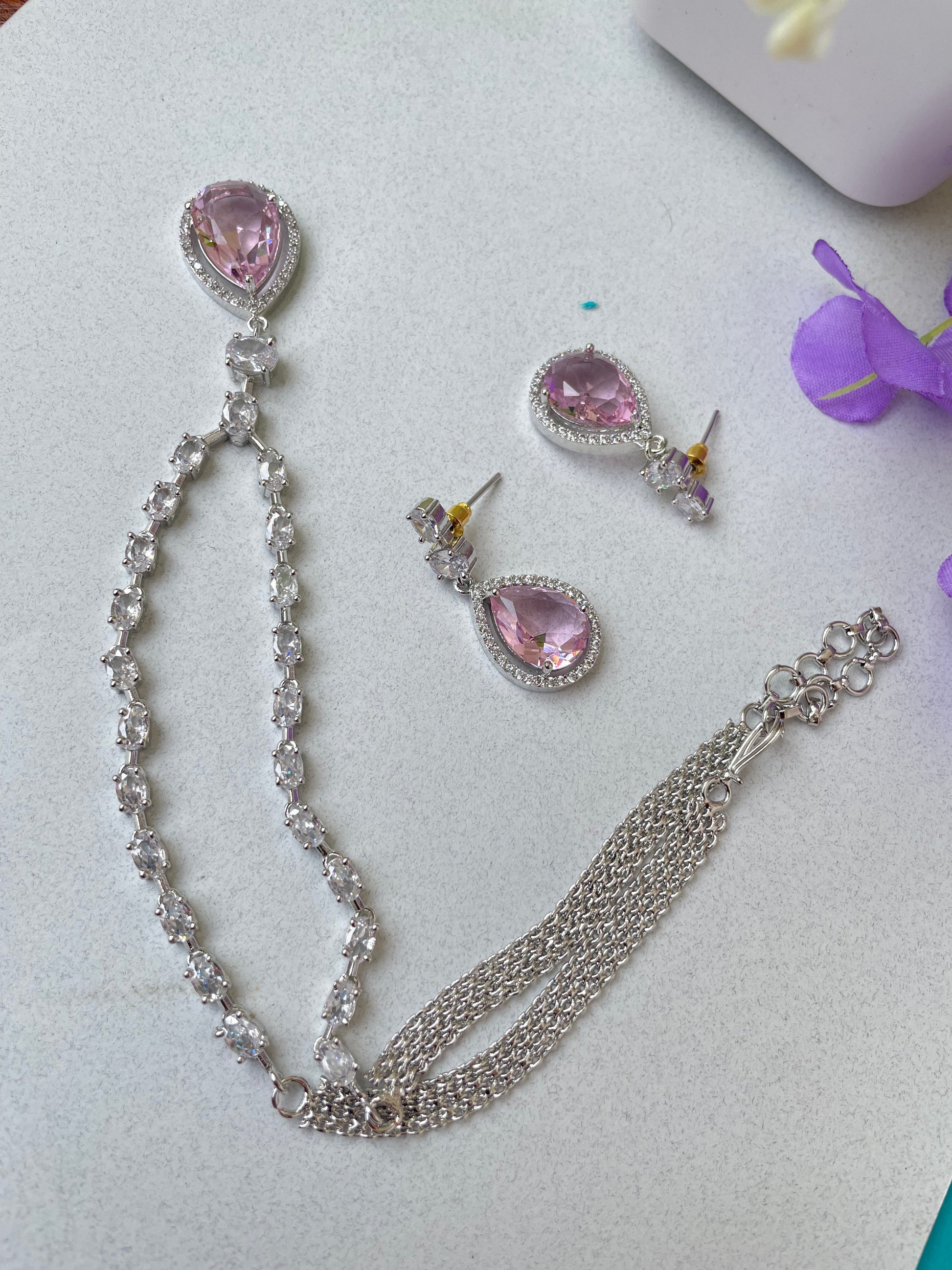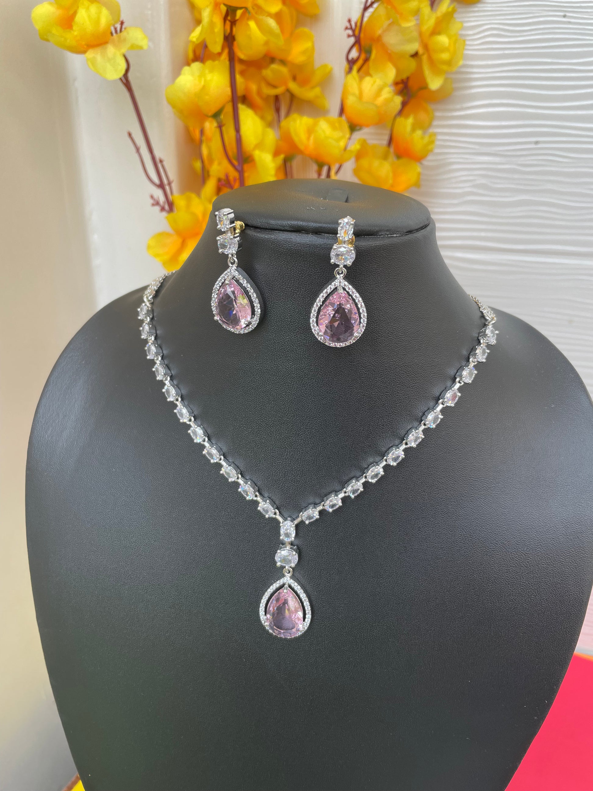Add a touch of sparkle to any occasion with this stunning American Diamond necklace set. Crafted for elegance and shine, it features a beautifully detailed necklace with matching earrings – perfect for parties, weddings, or festive celebrations.