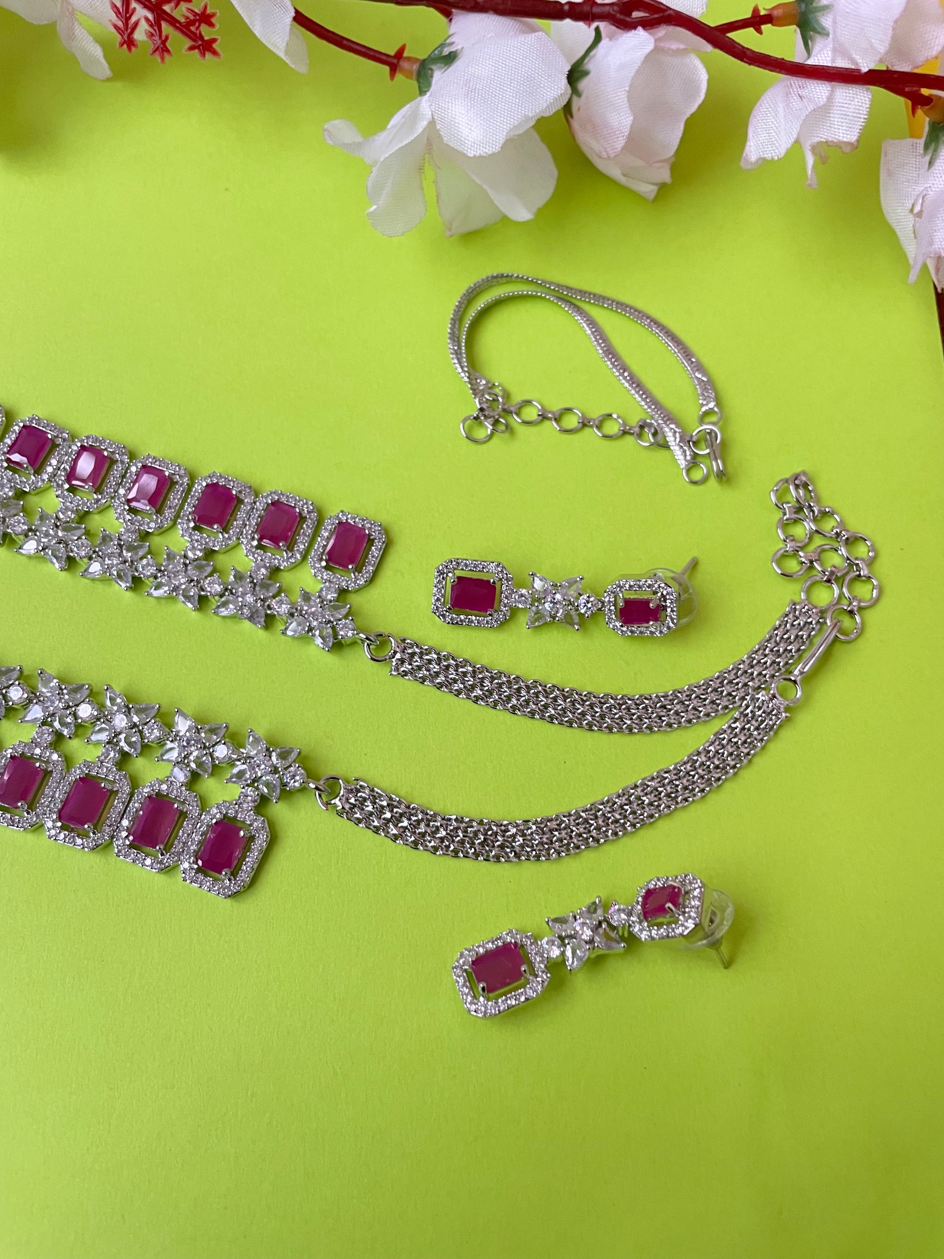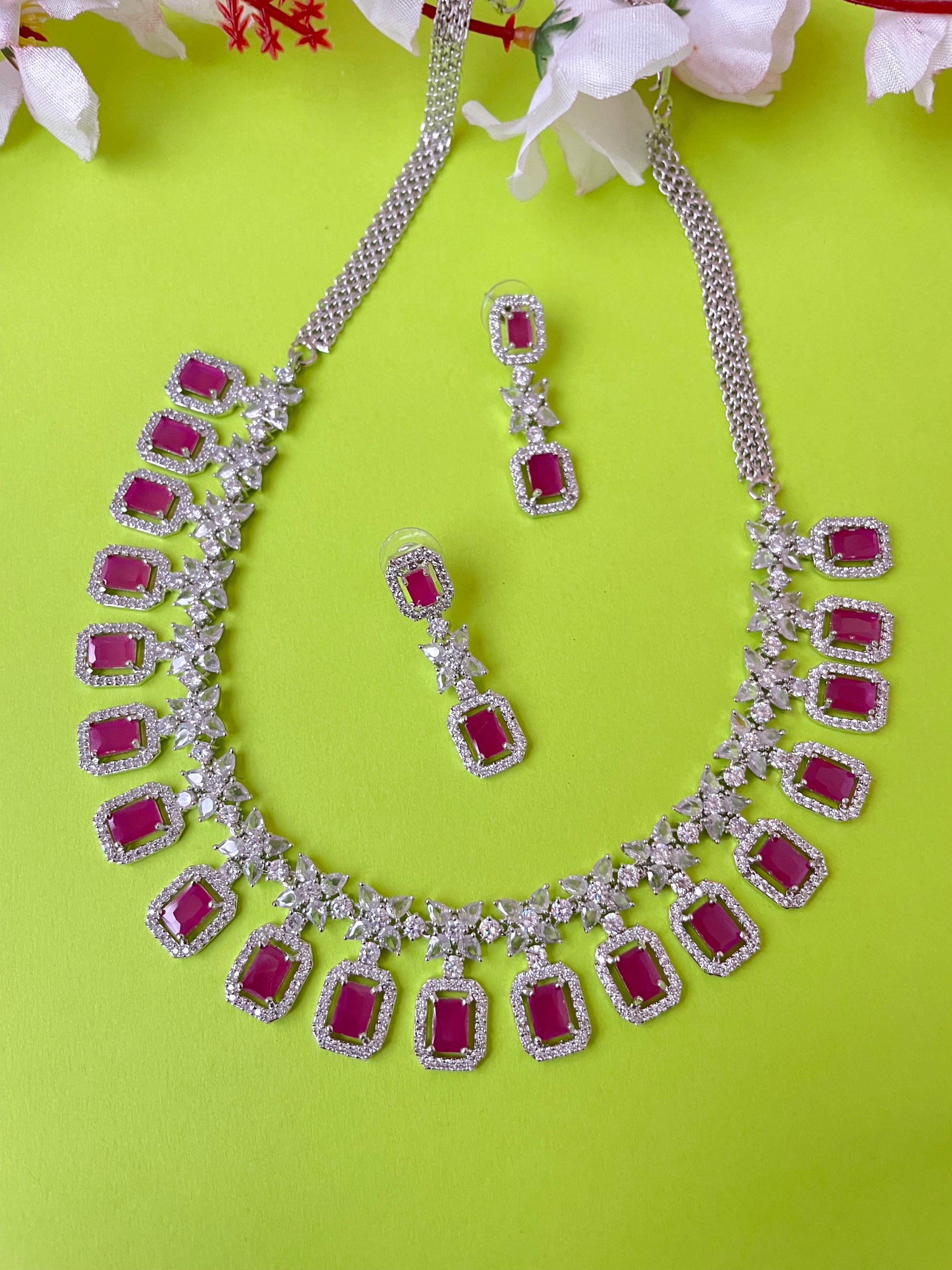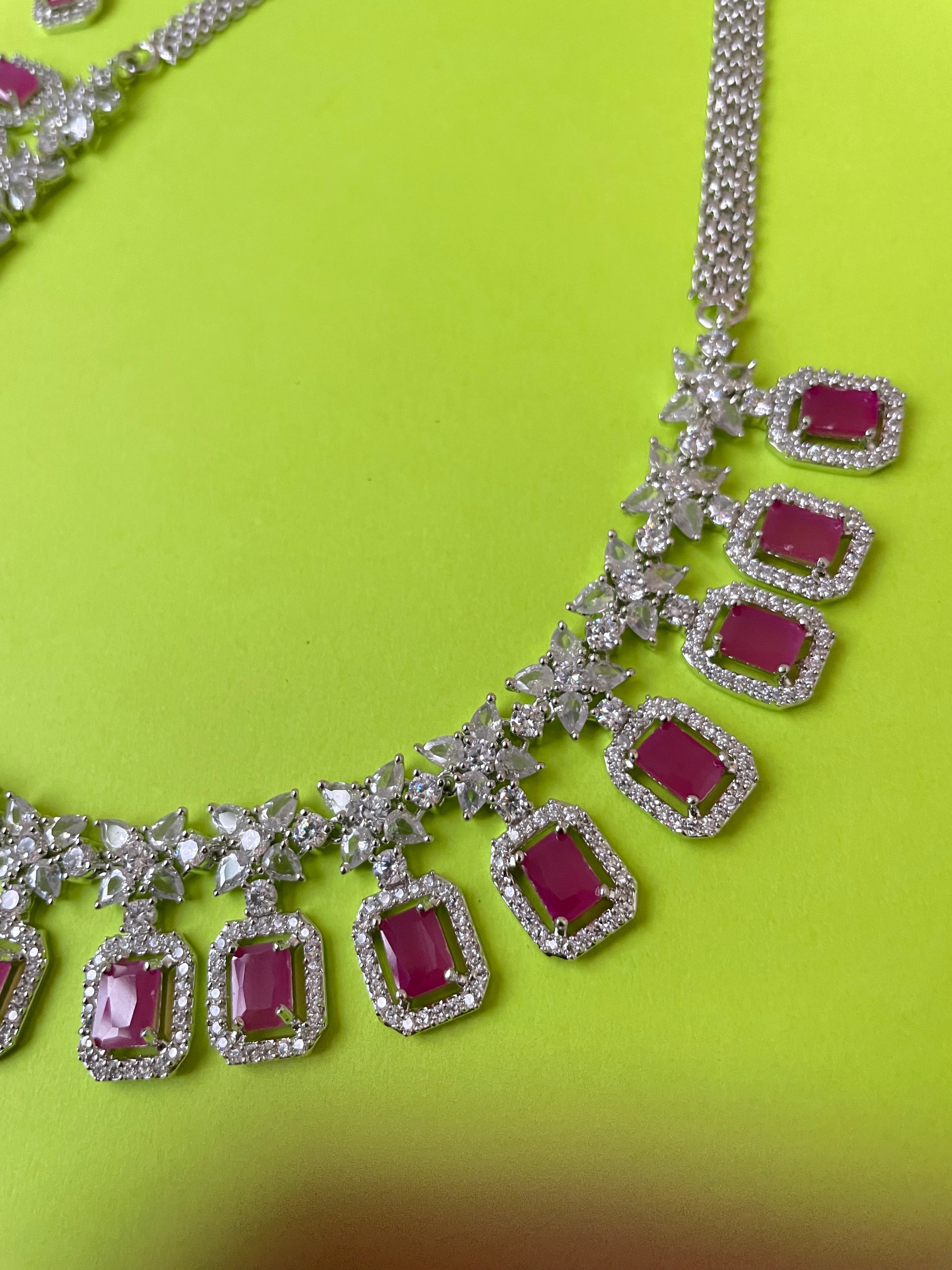 Add a touch of sparkle to any occasion with this stunning American Diamond necklace set. Crafted for elegance and shine, it features a beautifully detailed necklace with matching earrings – perfect for parties, weddings, or festive celebrations.