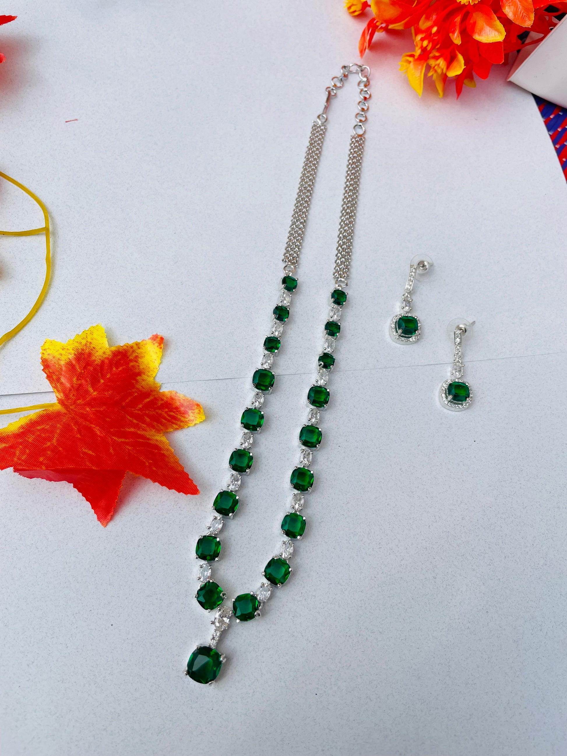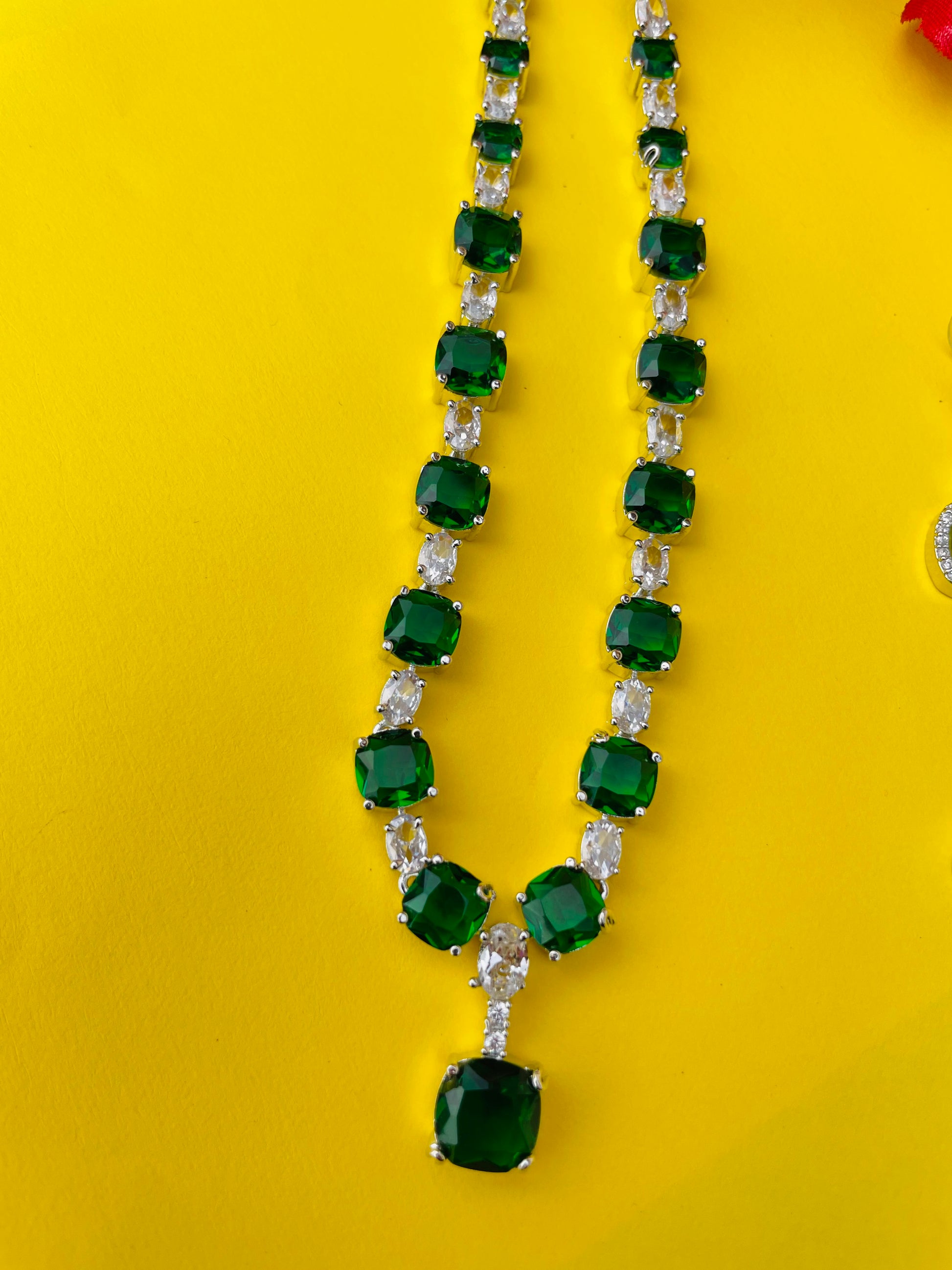 Add a touch of sparkle to any occasion with this stunning American Diamond necklace set. Crafted for elegance and shine, it features a beautifully detailed necklace with matching earrings – perfect for parties, weddings, or festive celebrations.
