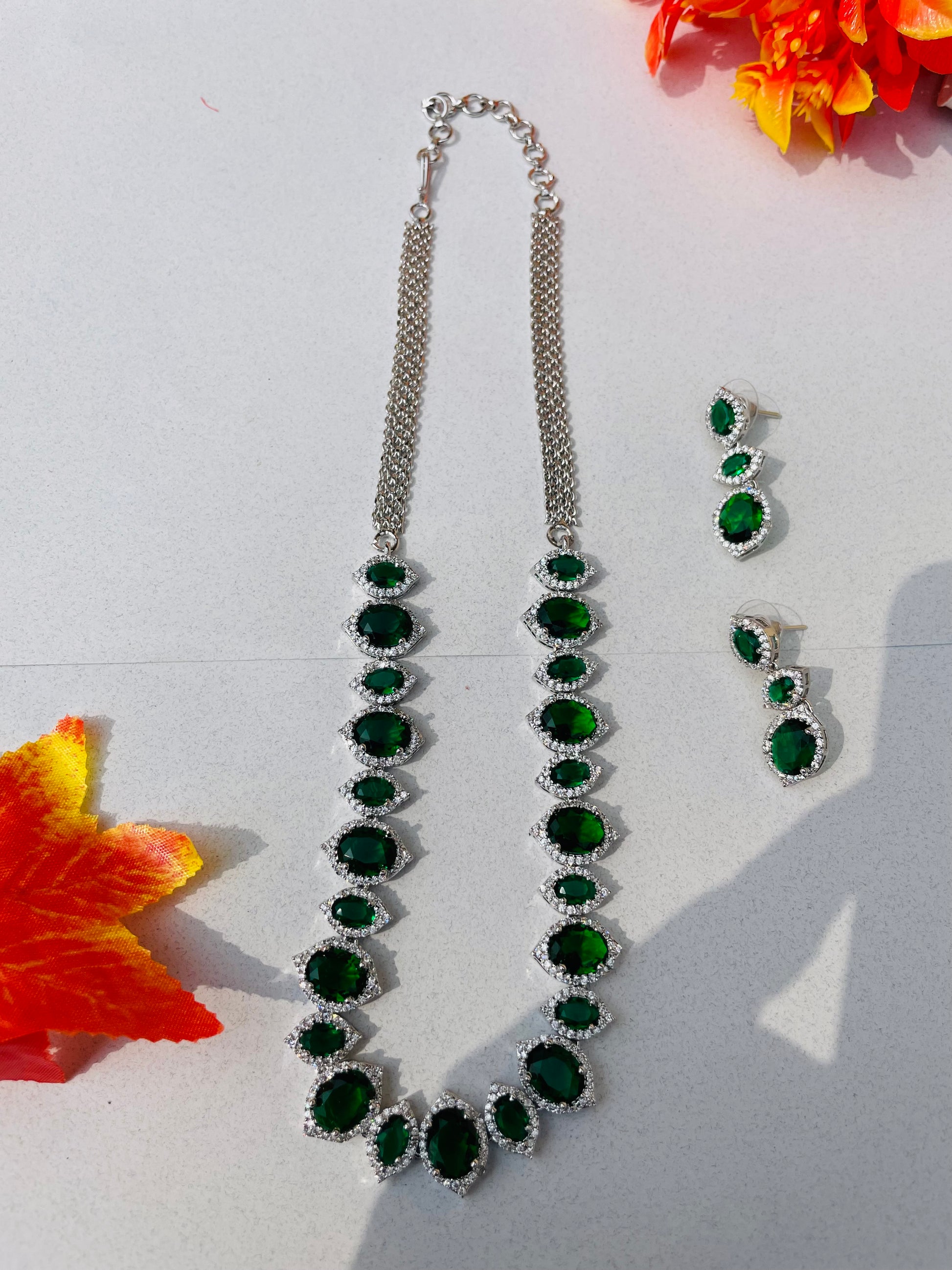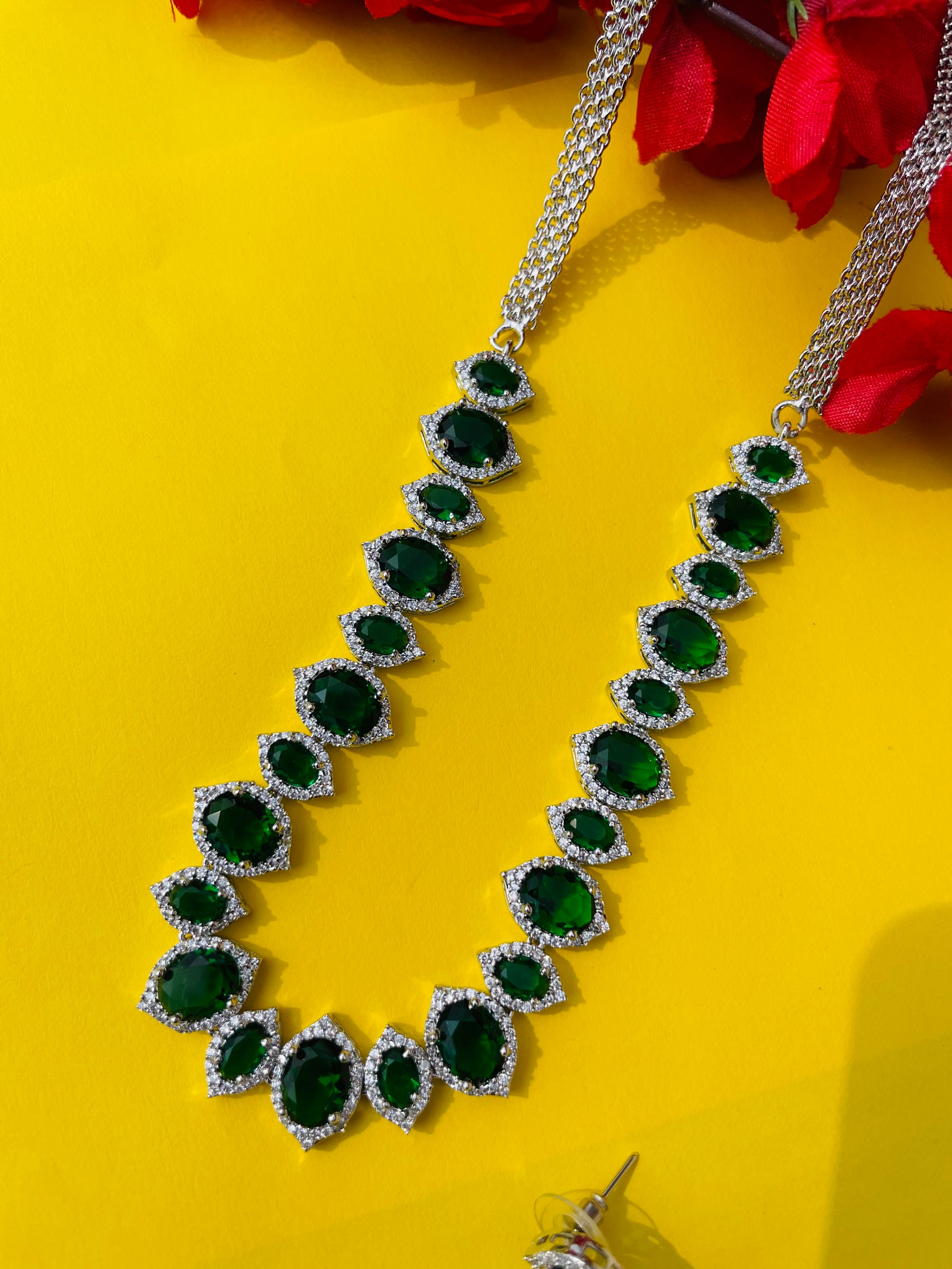 Add a touch of sparkle to any occasion with this stunning American Diamond necklace set. Crafted for elegance and shine, it features a beautifully detailed necklace with matching earrings – perfect for parties, weddings, or festive celebrations.
