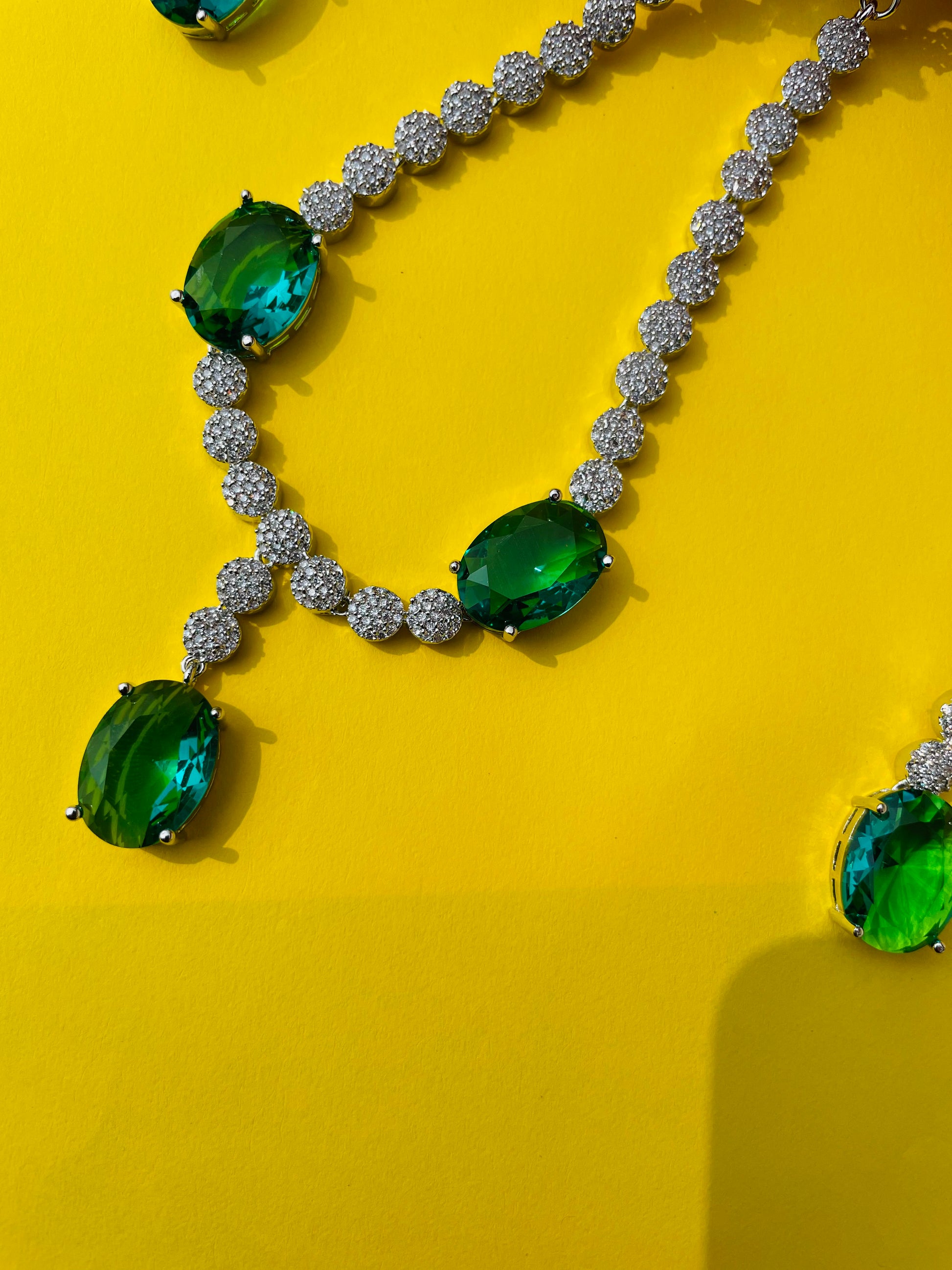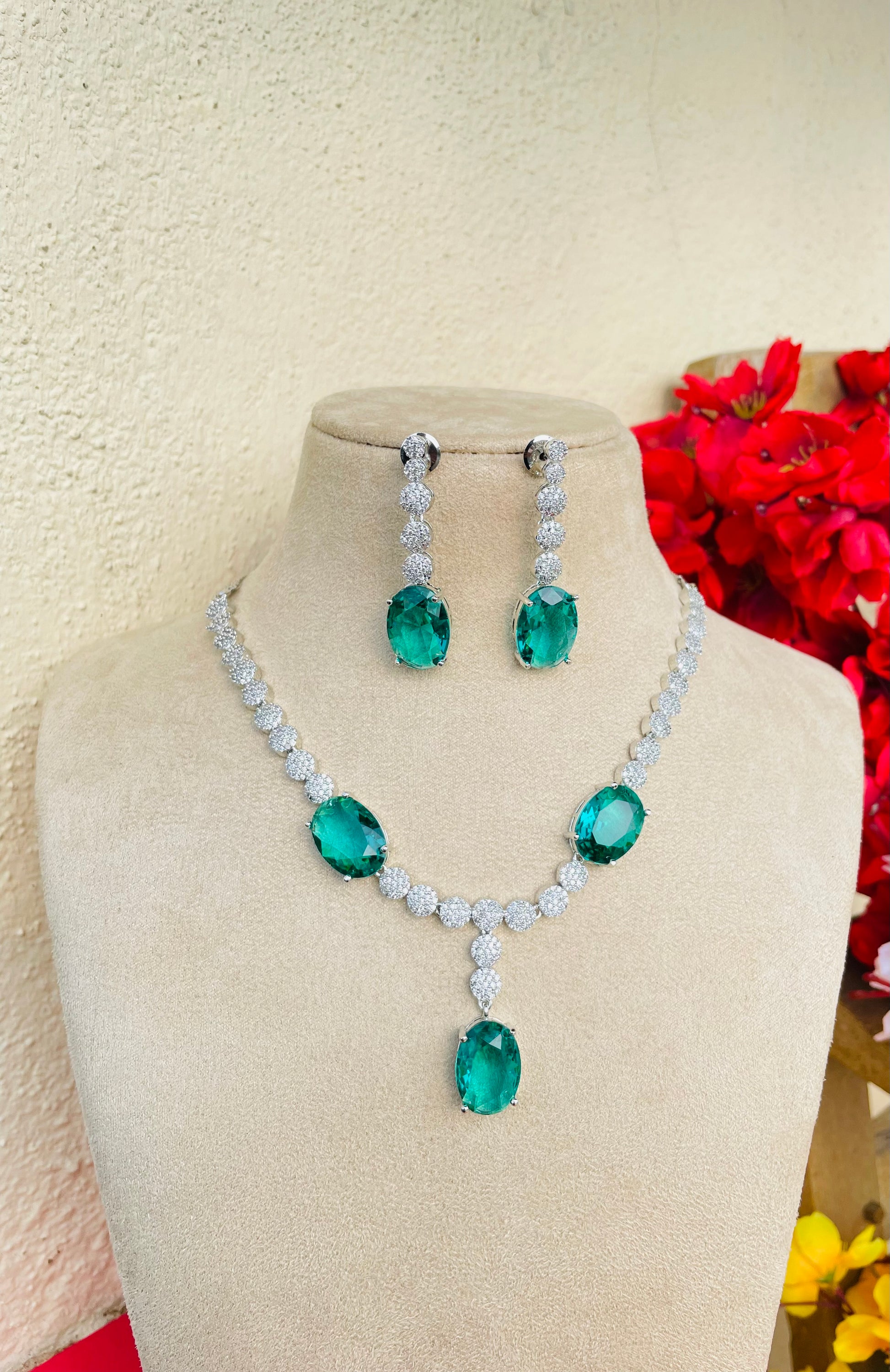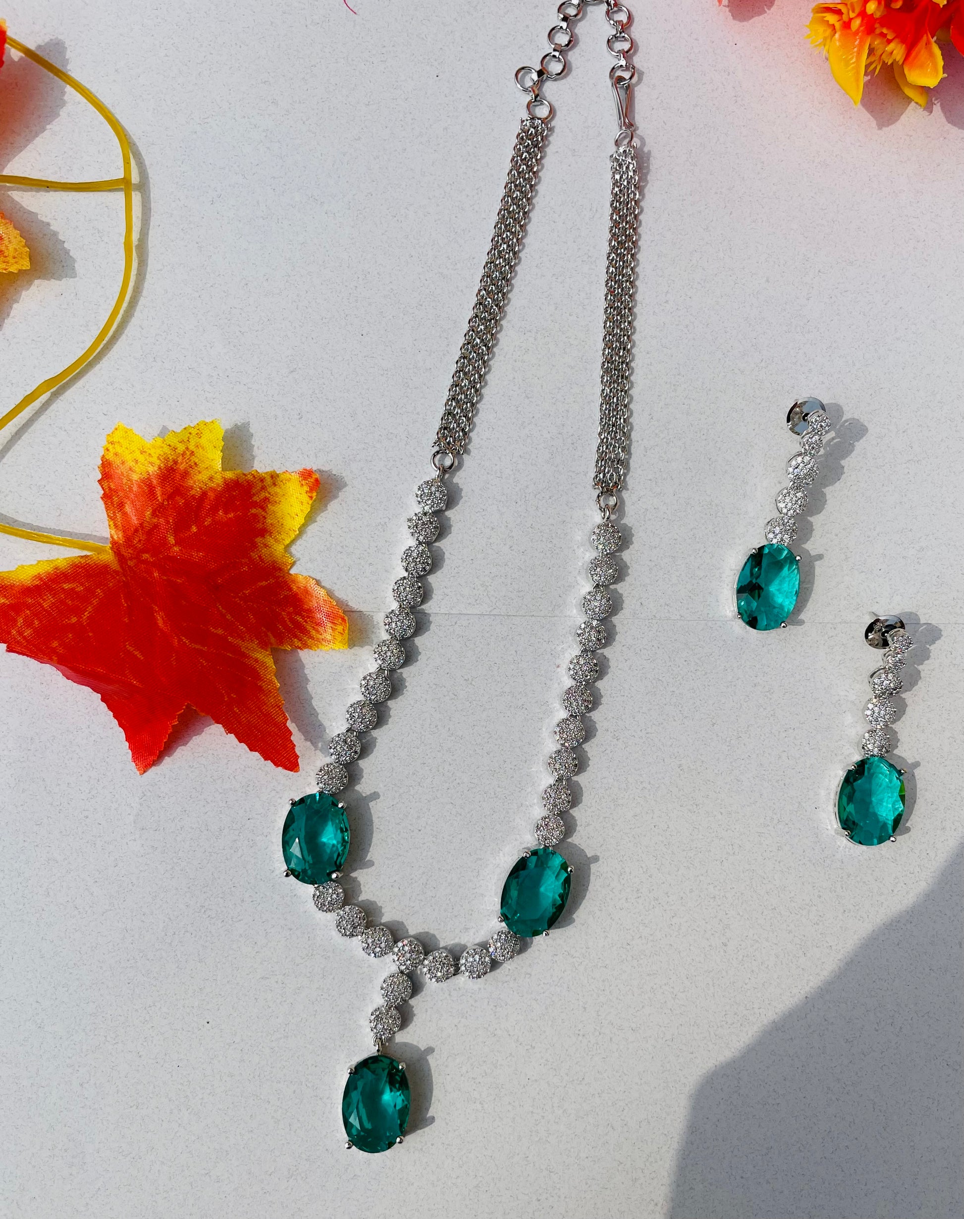 Add a touch of sparkle to any occasion with this stunning American Diamond necklace set. Crafted for elegance and shine, it features a beautifully detailed necklace with matching earrings – perfect for parties, weddings, or festive celebrations.