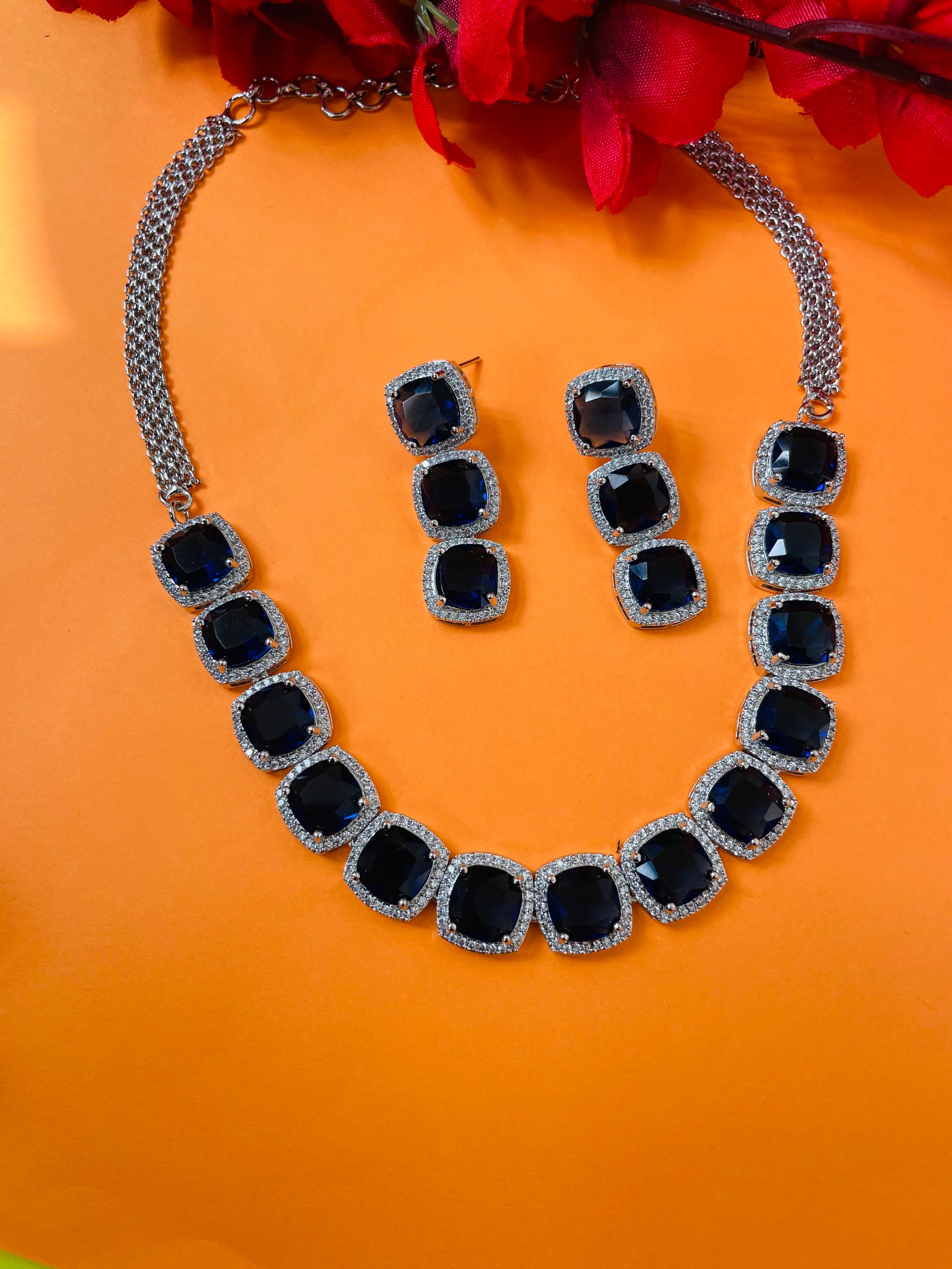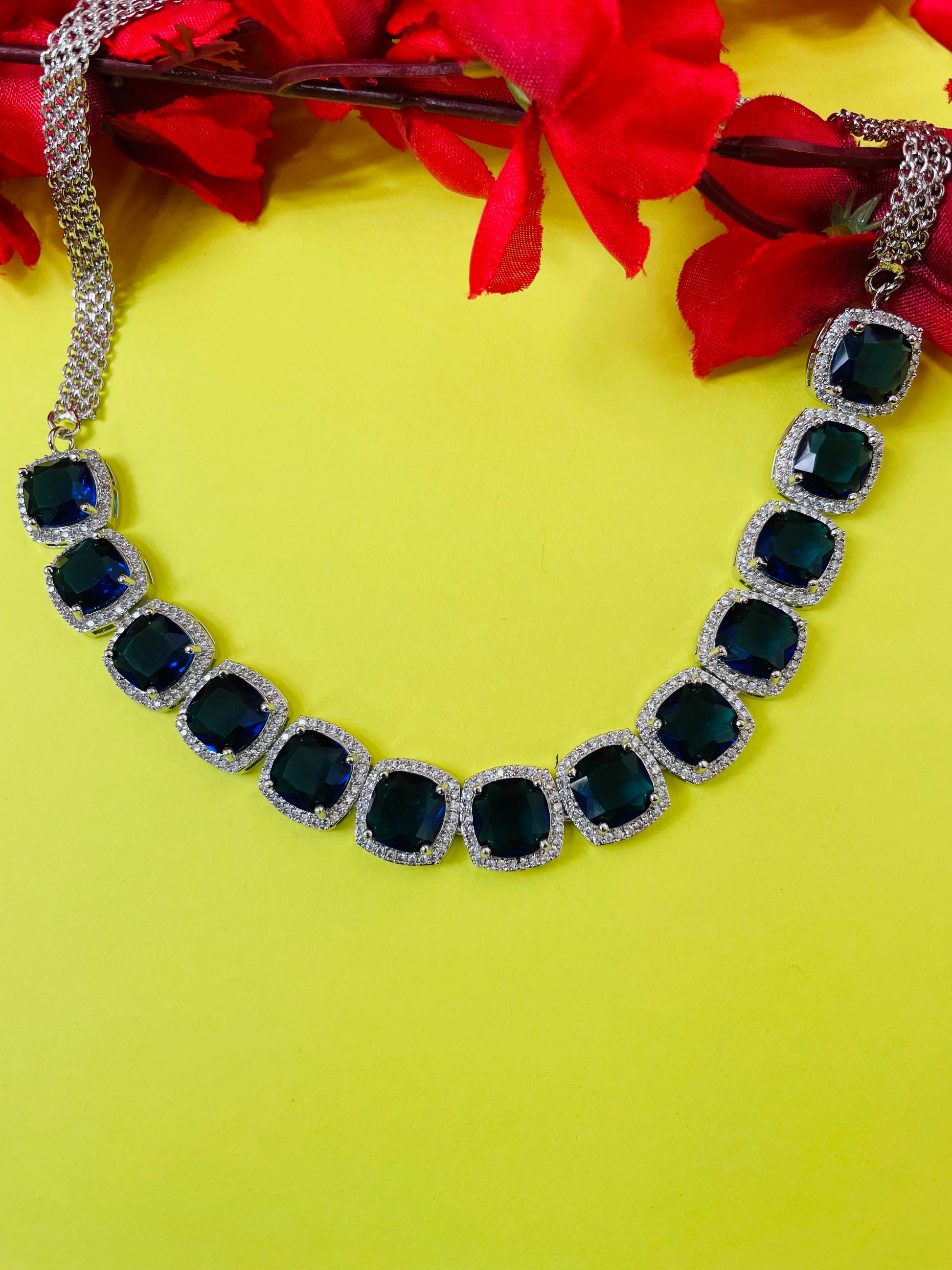 Add a touch of sparkle to any occasion with this stunning American Diamond necklace set. Crafted for elegance and shine, it features a beautifully detailed necklace with matching earrings – perfect for parties, weddings, or festive celebrations.