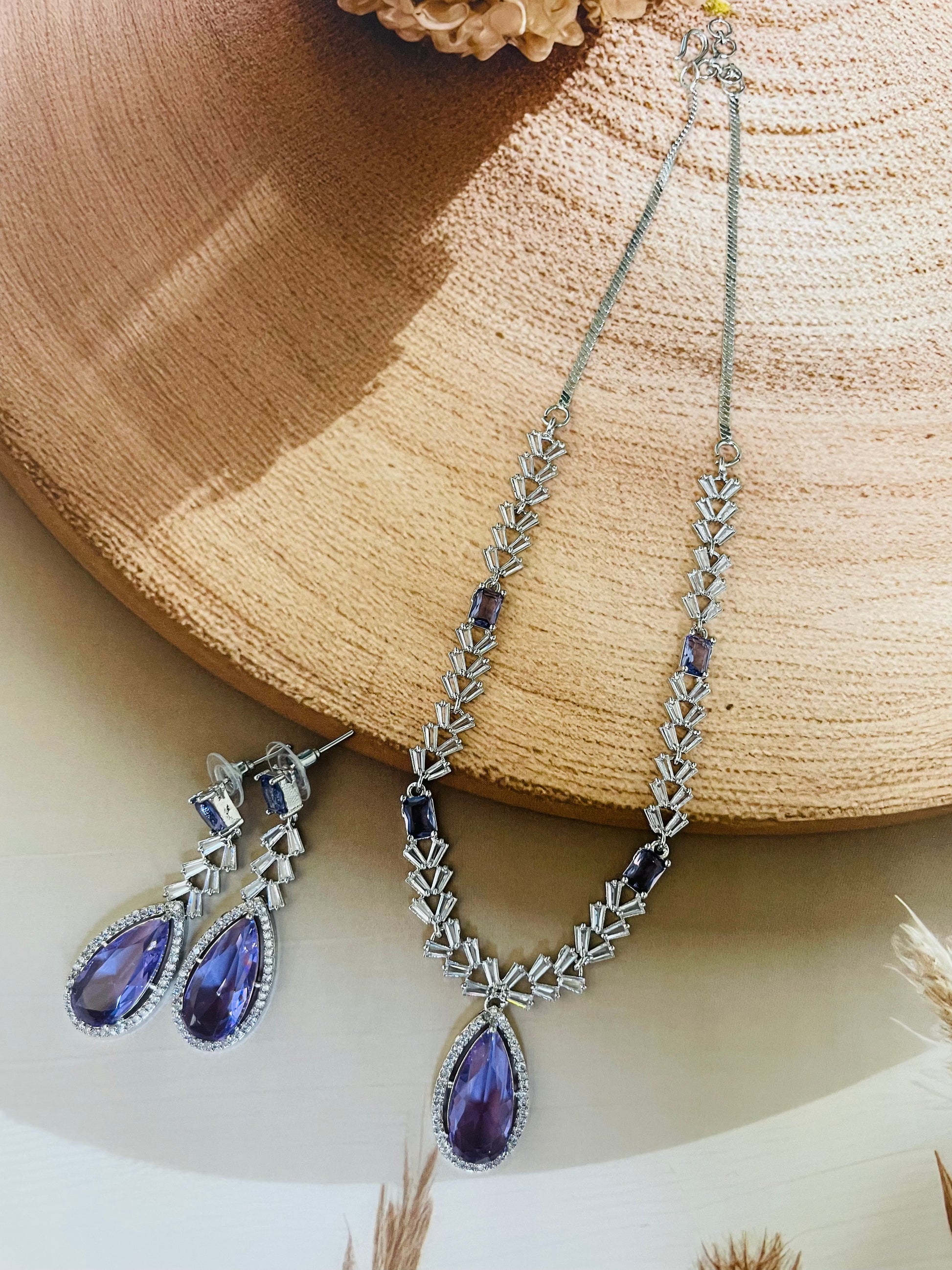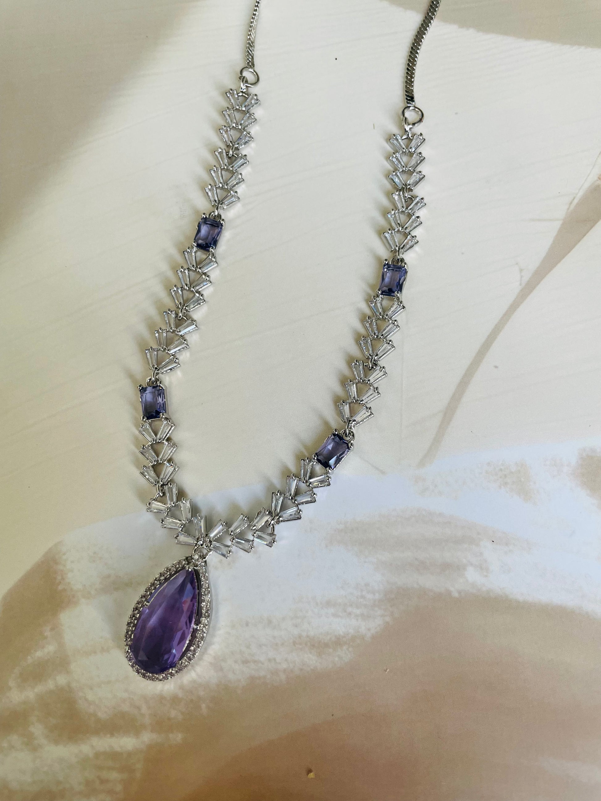 Add a touch of sparkle to any occasion with this stunning American Diamond necklace set. Crafted for elegance and shine, it features a beautifully detailed necklace with matching earrings – perfect for parties, weddings, or festive celebrations.