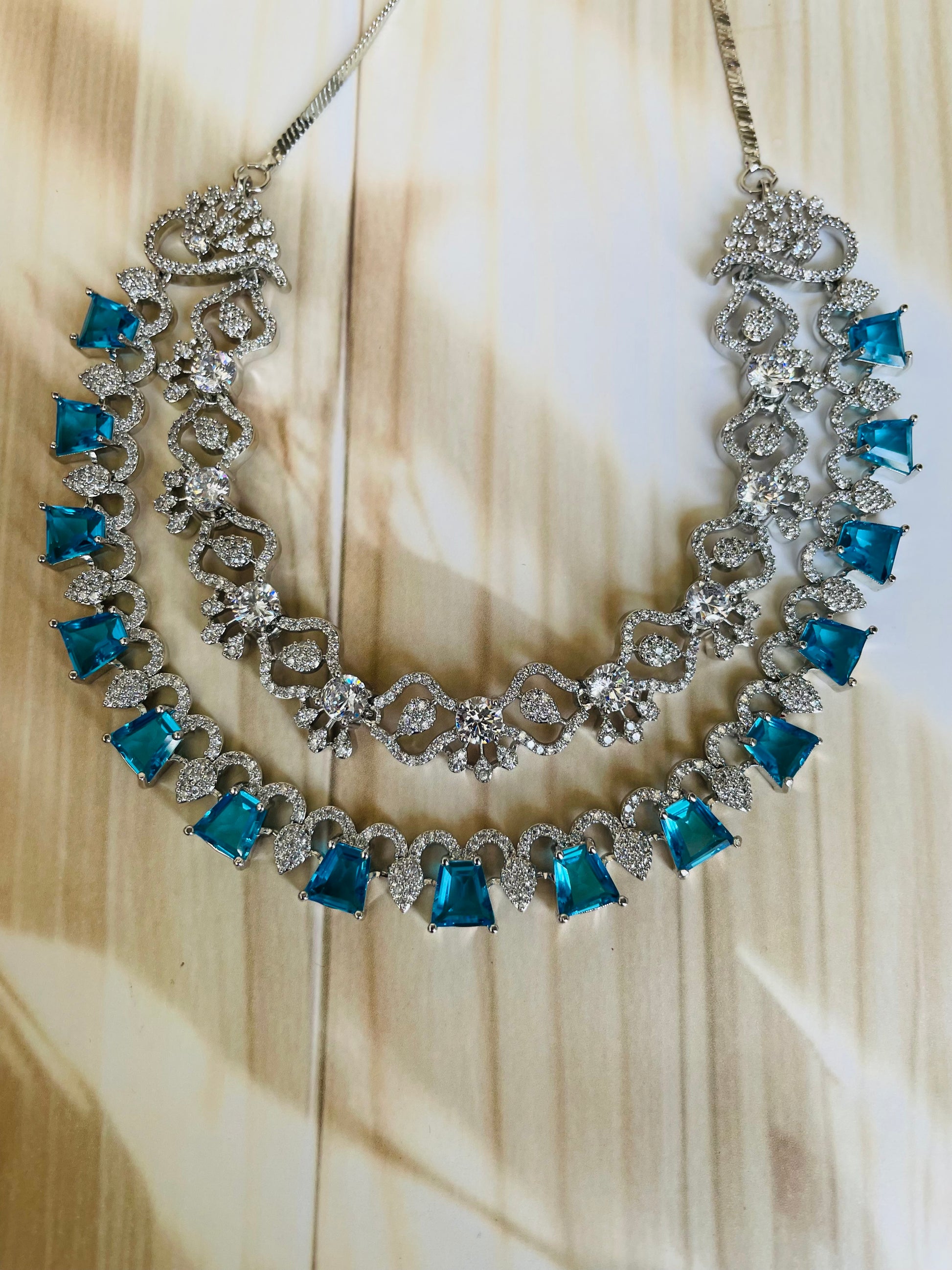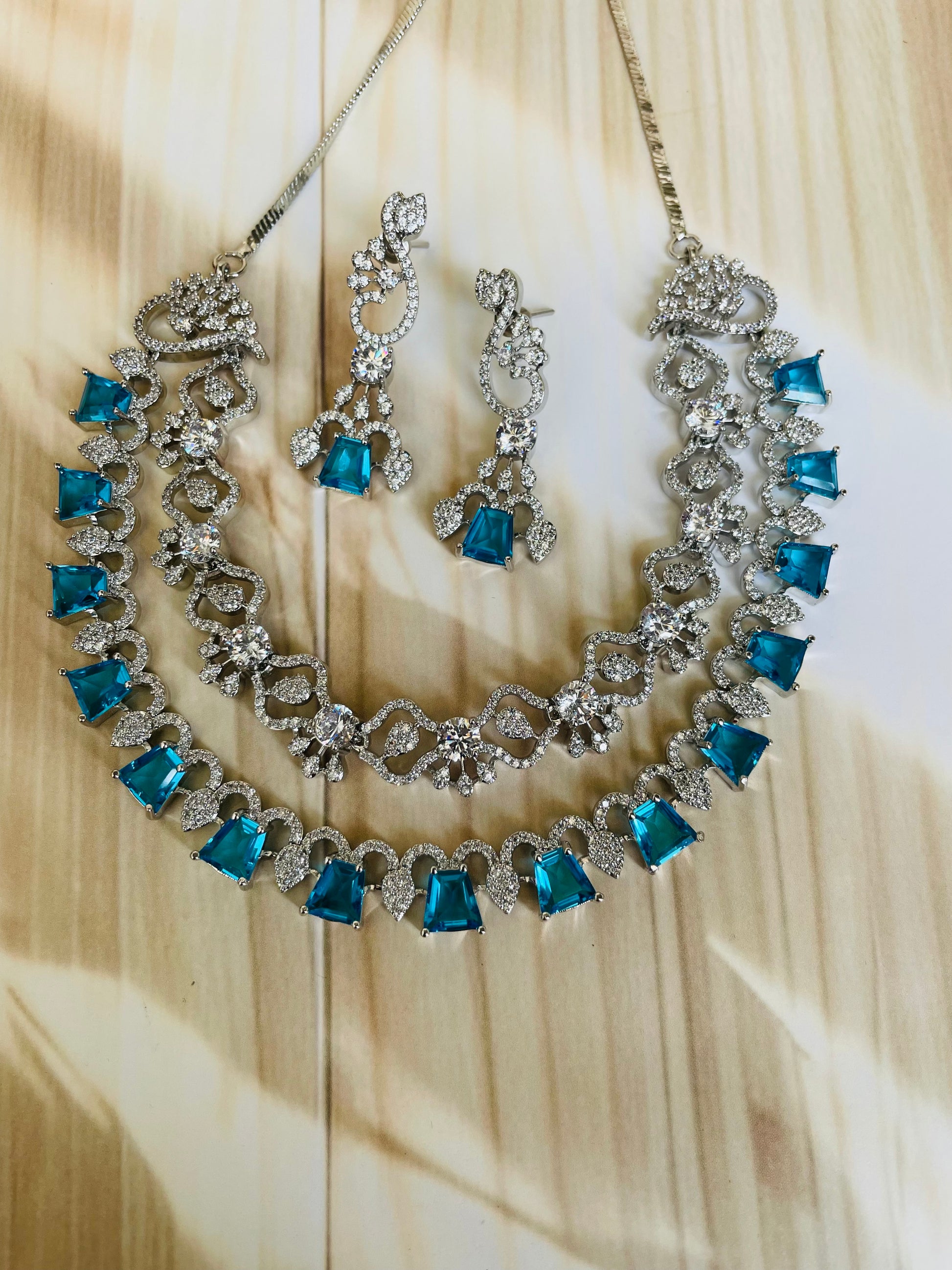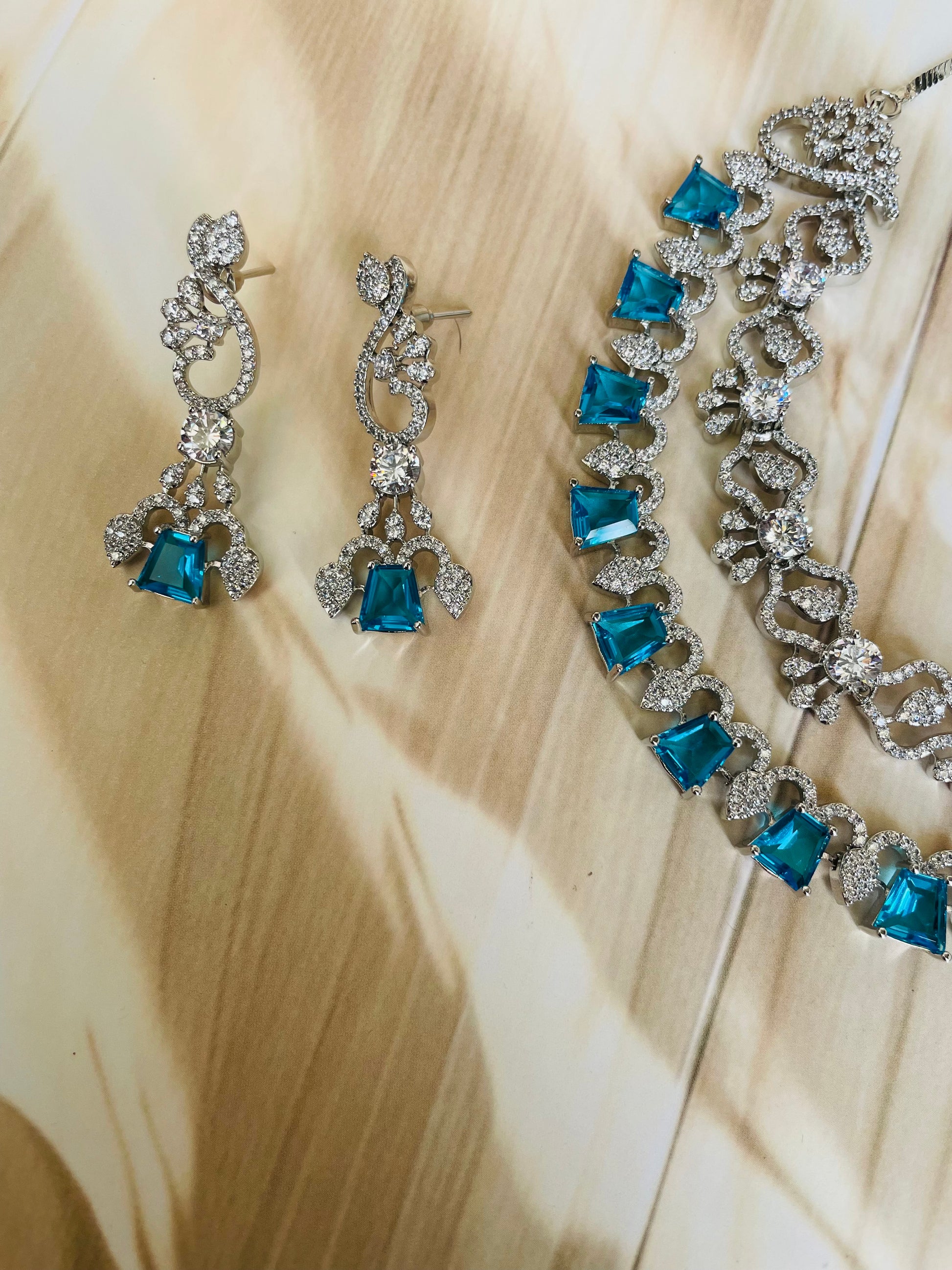 Add a touch of sparkle to any occasion with this stunning American Diamond necklace set. Crafted for elegance and shine, it features a beautifully detailed necklace with matching earrings – perfect for parties, weddings, or festive celebrations.