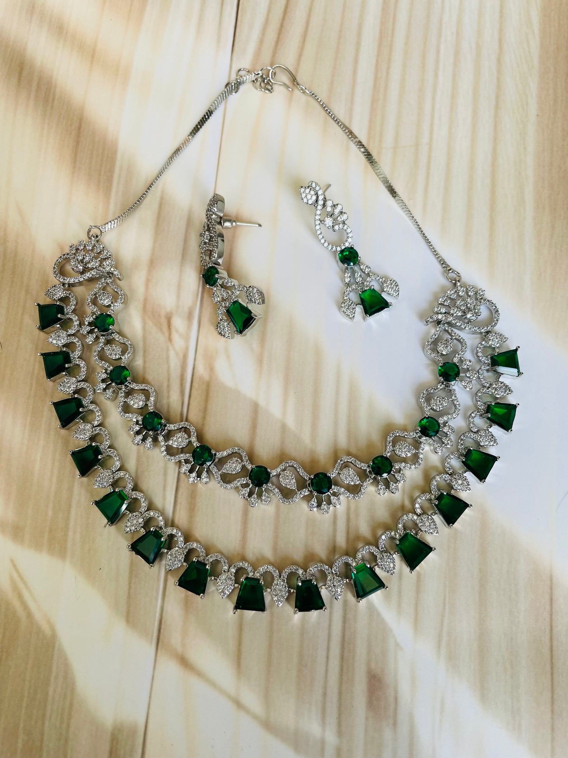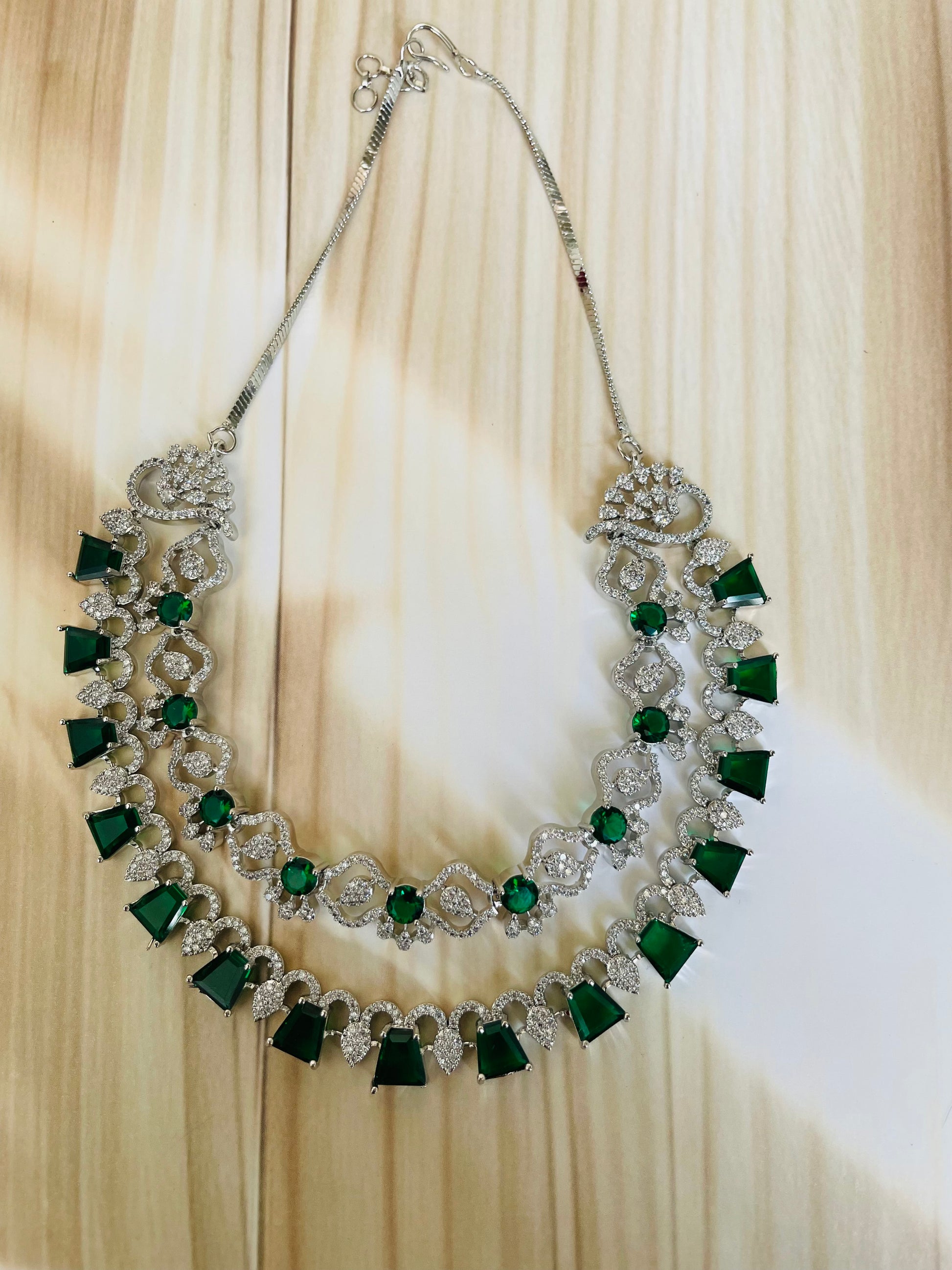 Add a touch of sparkle to any occasion with this stunning American Diamond necklace set. Crafted for elegance and shine, it features a beautifully detailed necklace with matching earrings – perfect for parties, weddings, or festive celebrations.