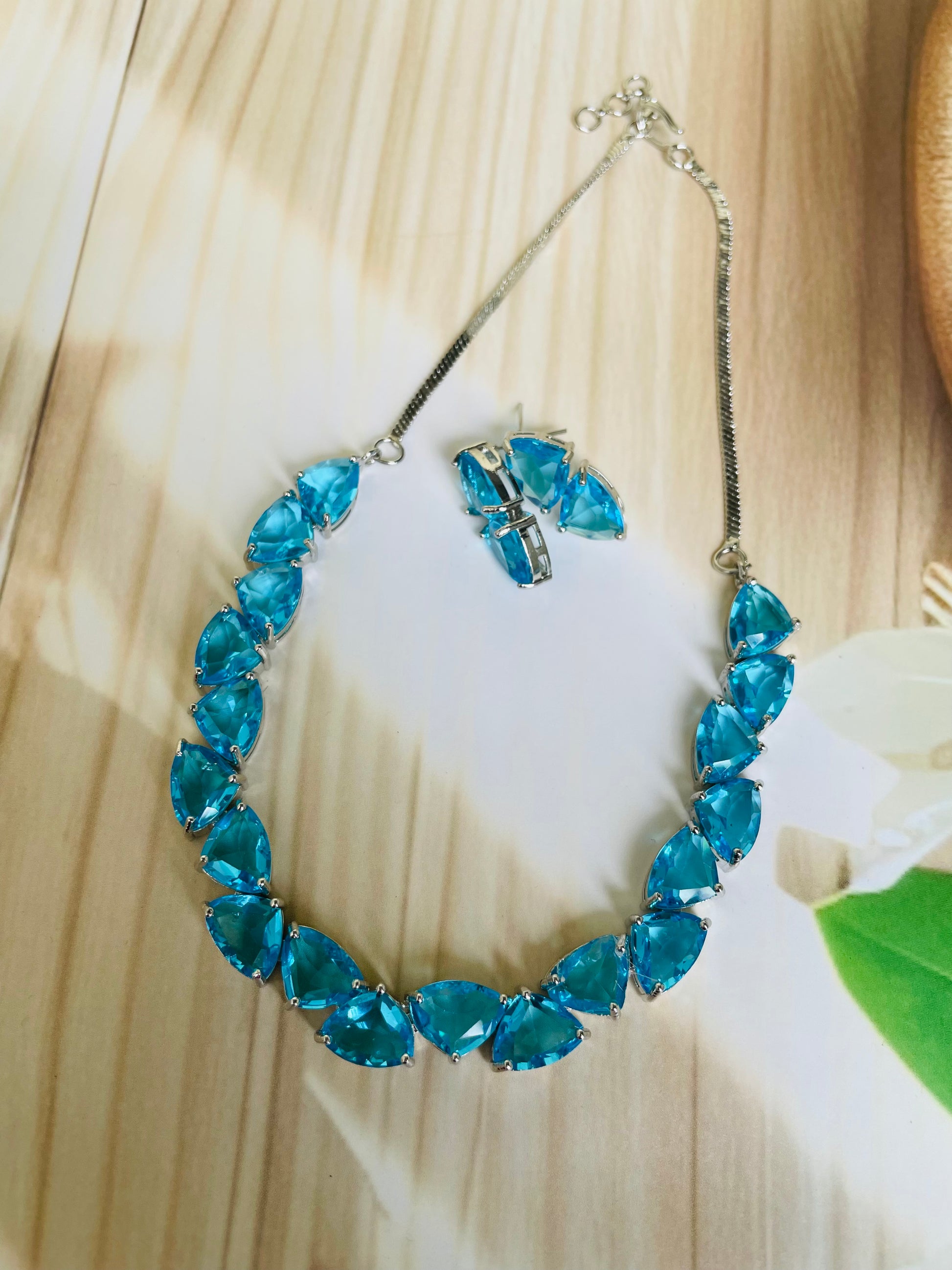 Add a touch of sparkle to any occasion with this stunning American Diamond necklace set. Crafted for elegance and shine, it features a beautifully detailed necklace with matching earrings – perfect for parties, weddings, or festive celebrations.