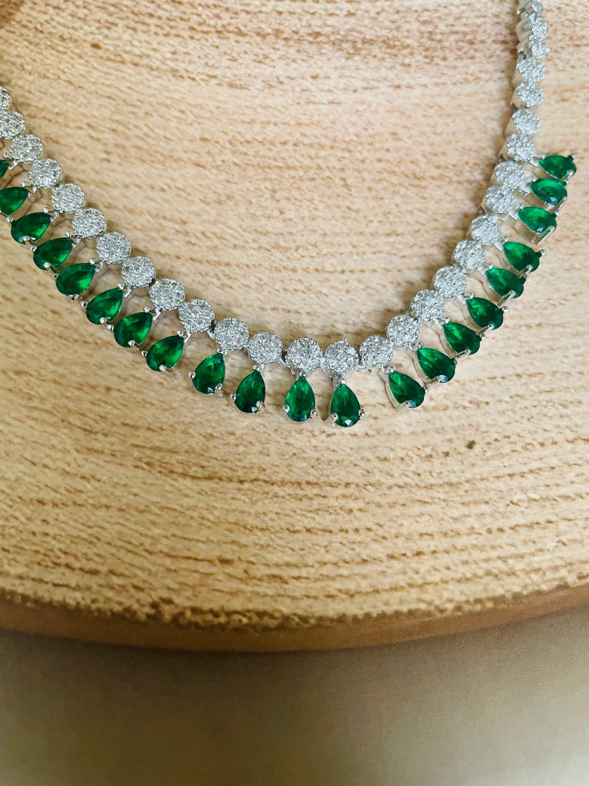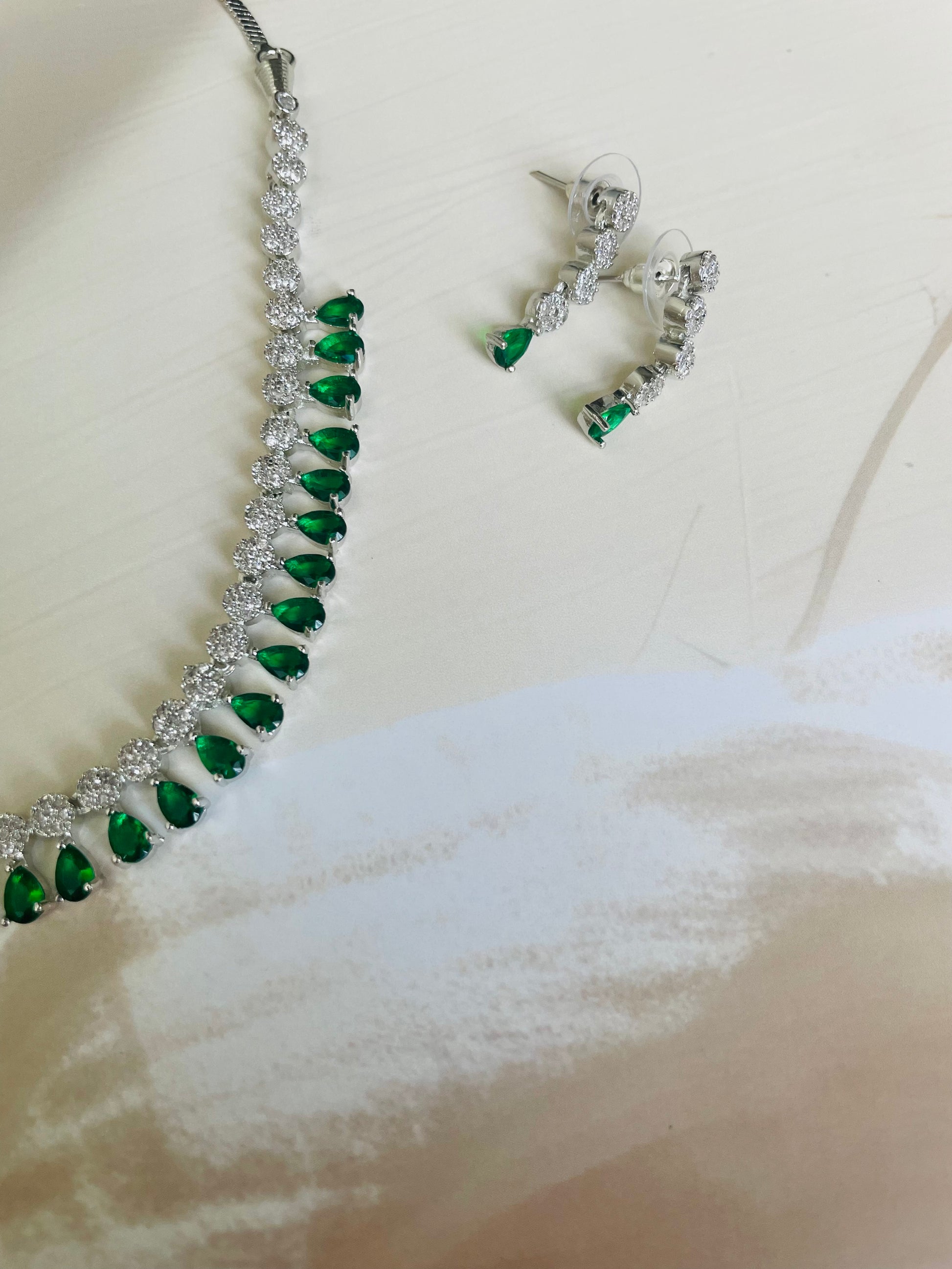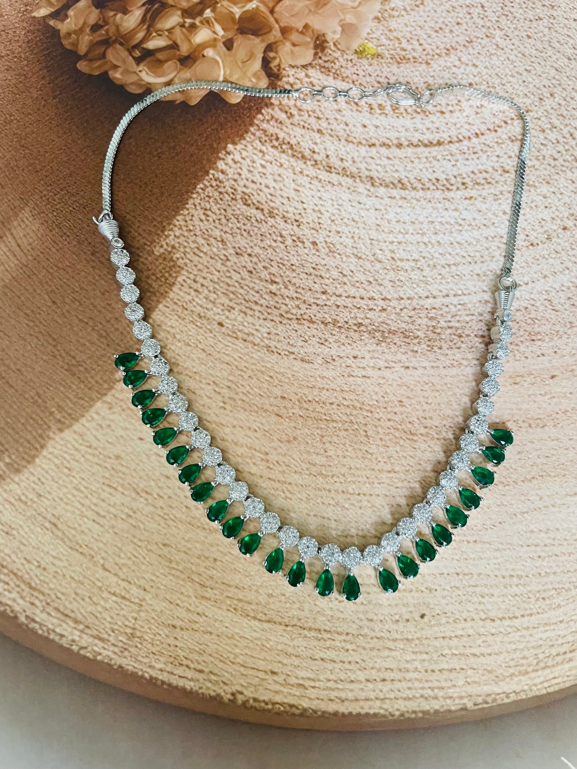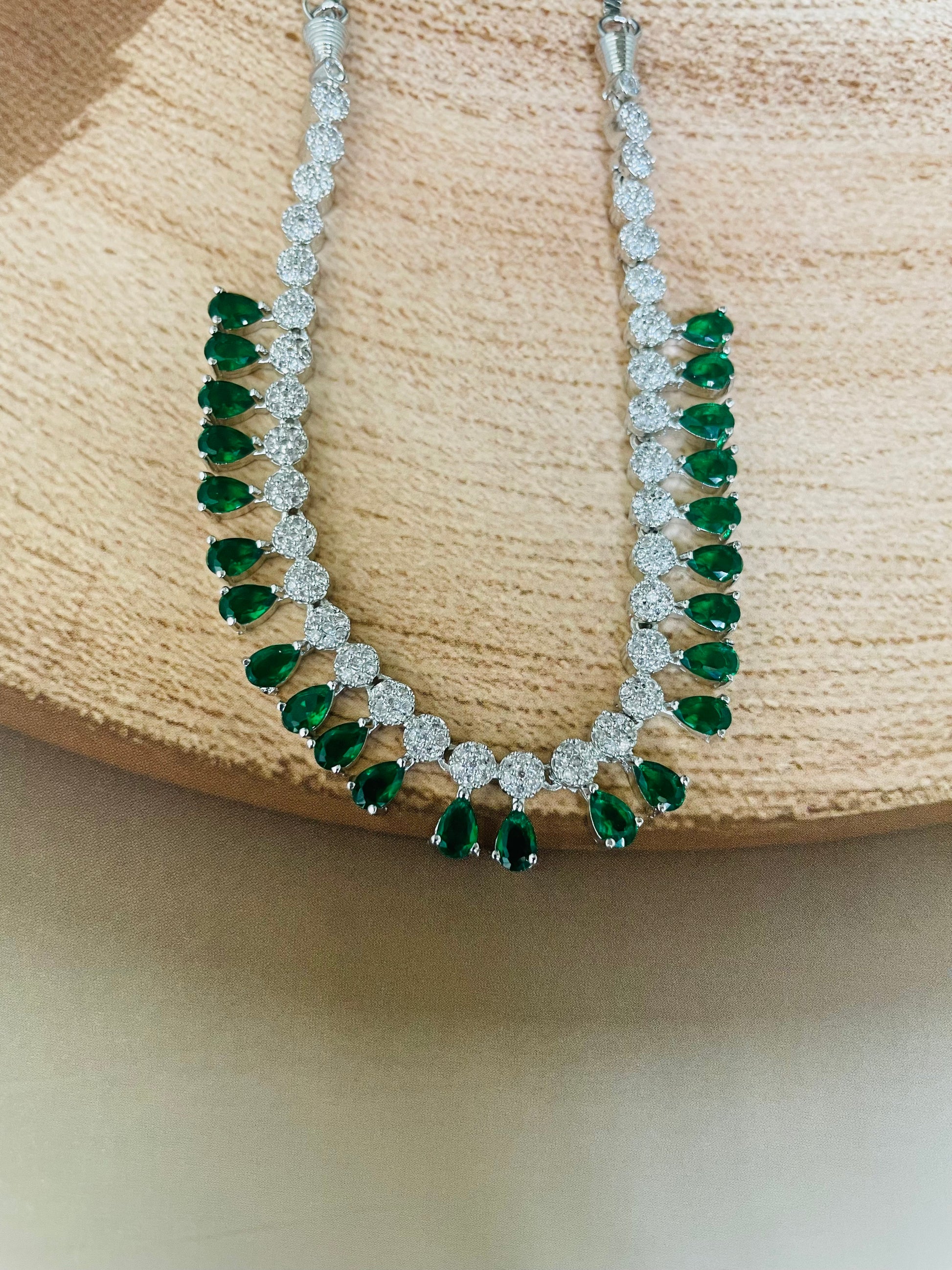 Add a touch of sparkle to any occasion with this stunning American Diamond necklace set. Crafted for elegance and shine, it features a beautifully detailed necklace with matching earrings – perfect for parties, weddings, or festive celebrations.