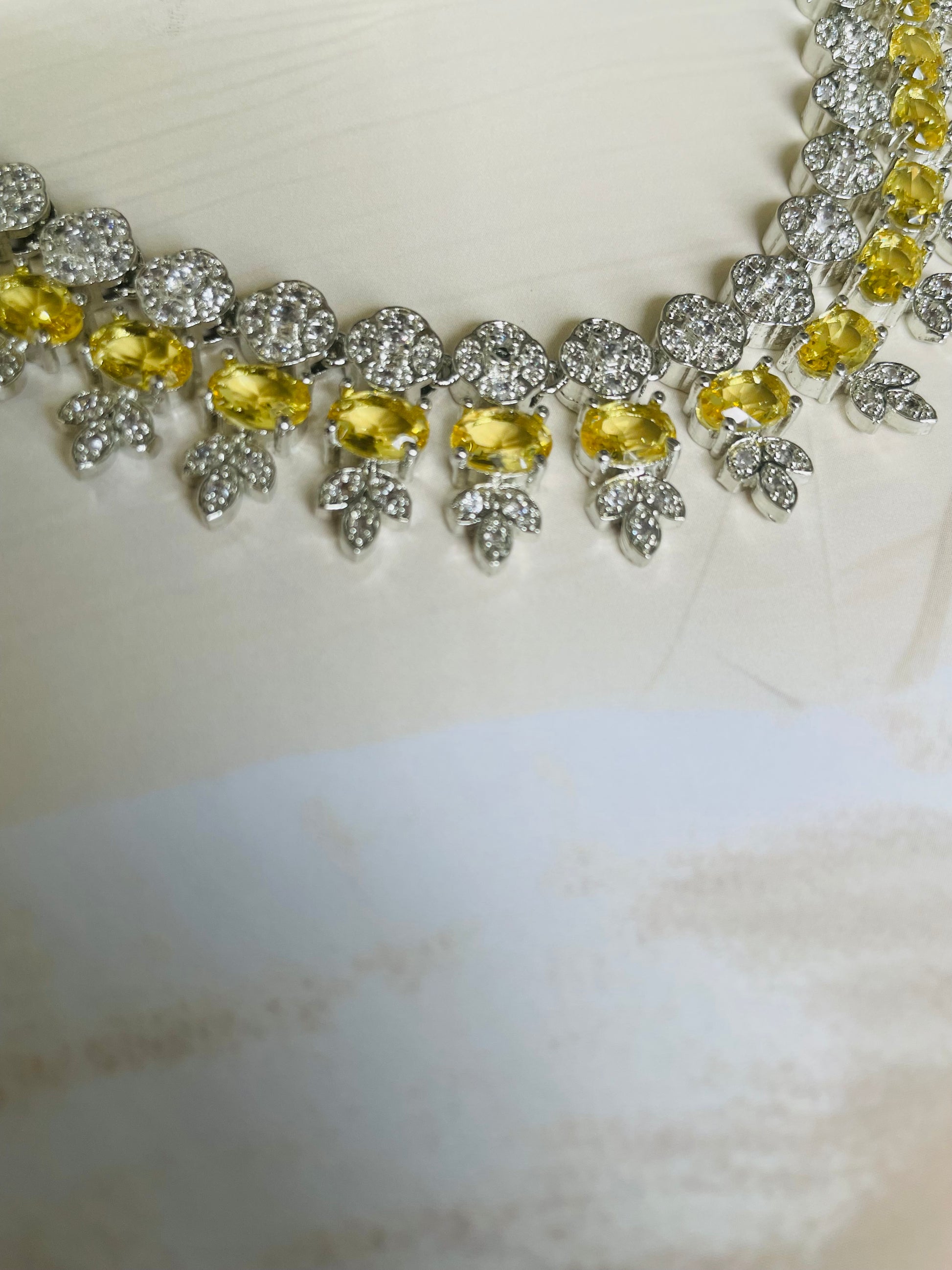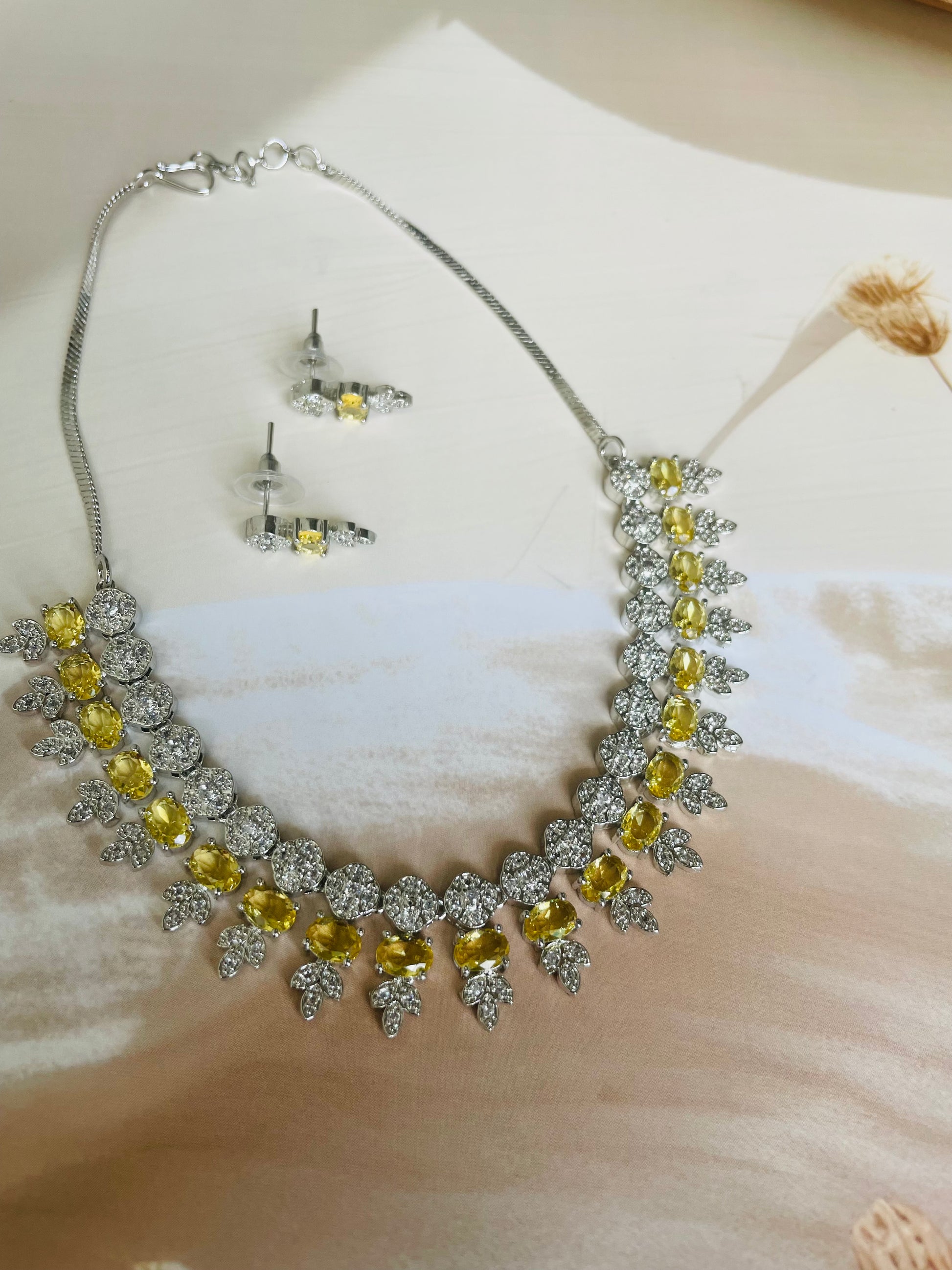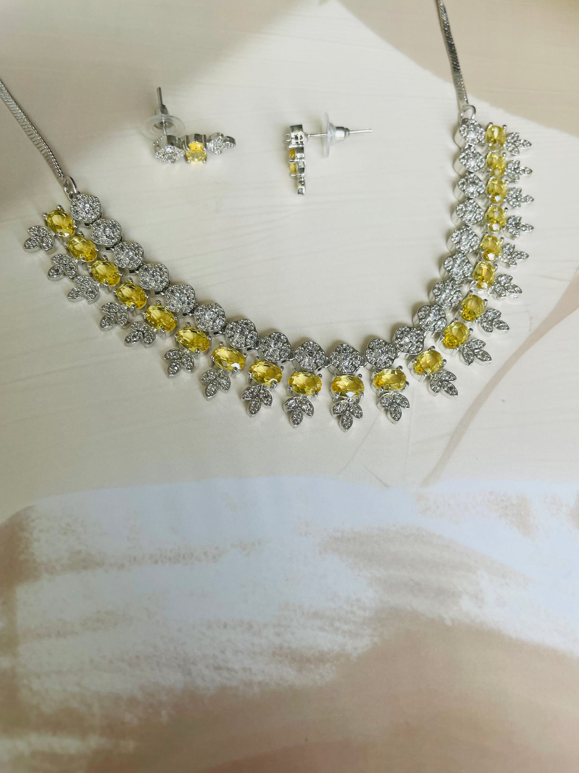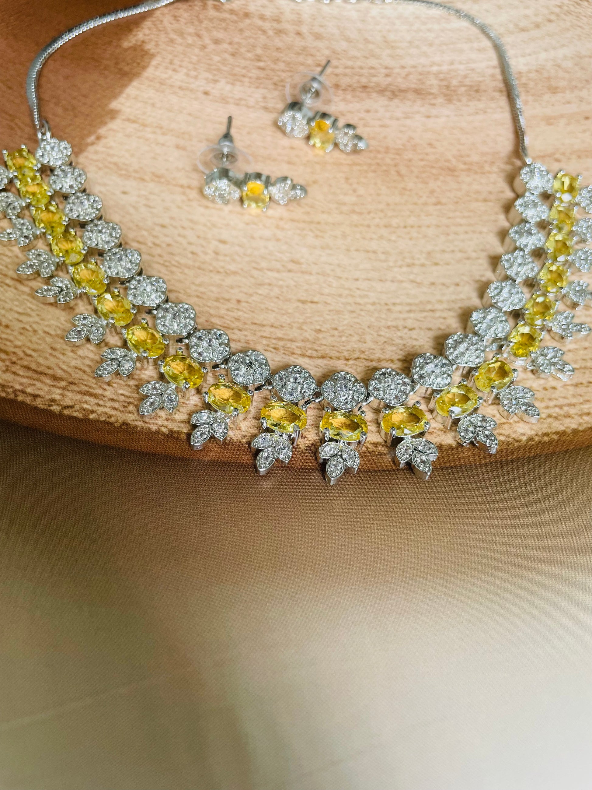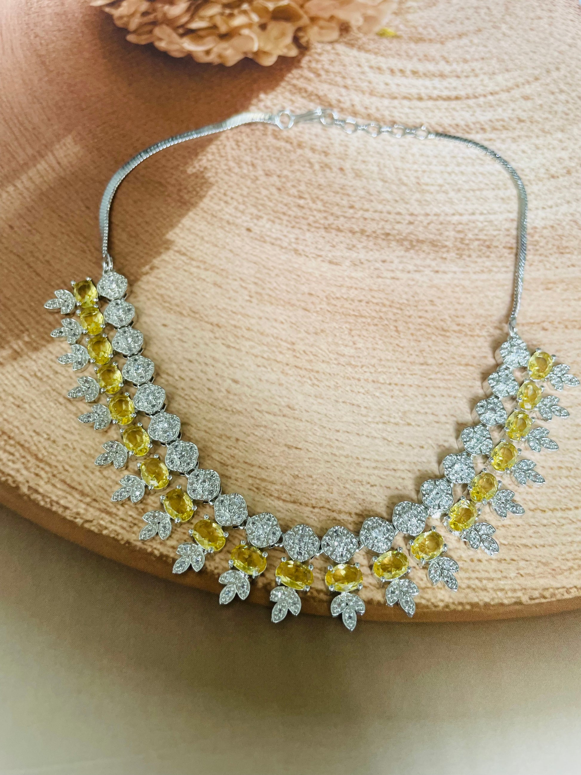 Add a touch of sparkle to any occasion with this stunning American Diamond necklace set. Crafted for elegance and shine, it features a beautifully detailed necklace with matching earrings – perfect for parties, weddings, or festive celebrations.