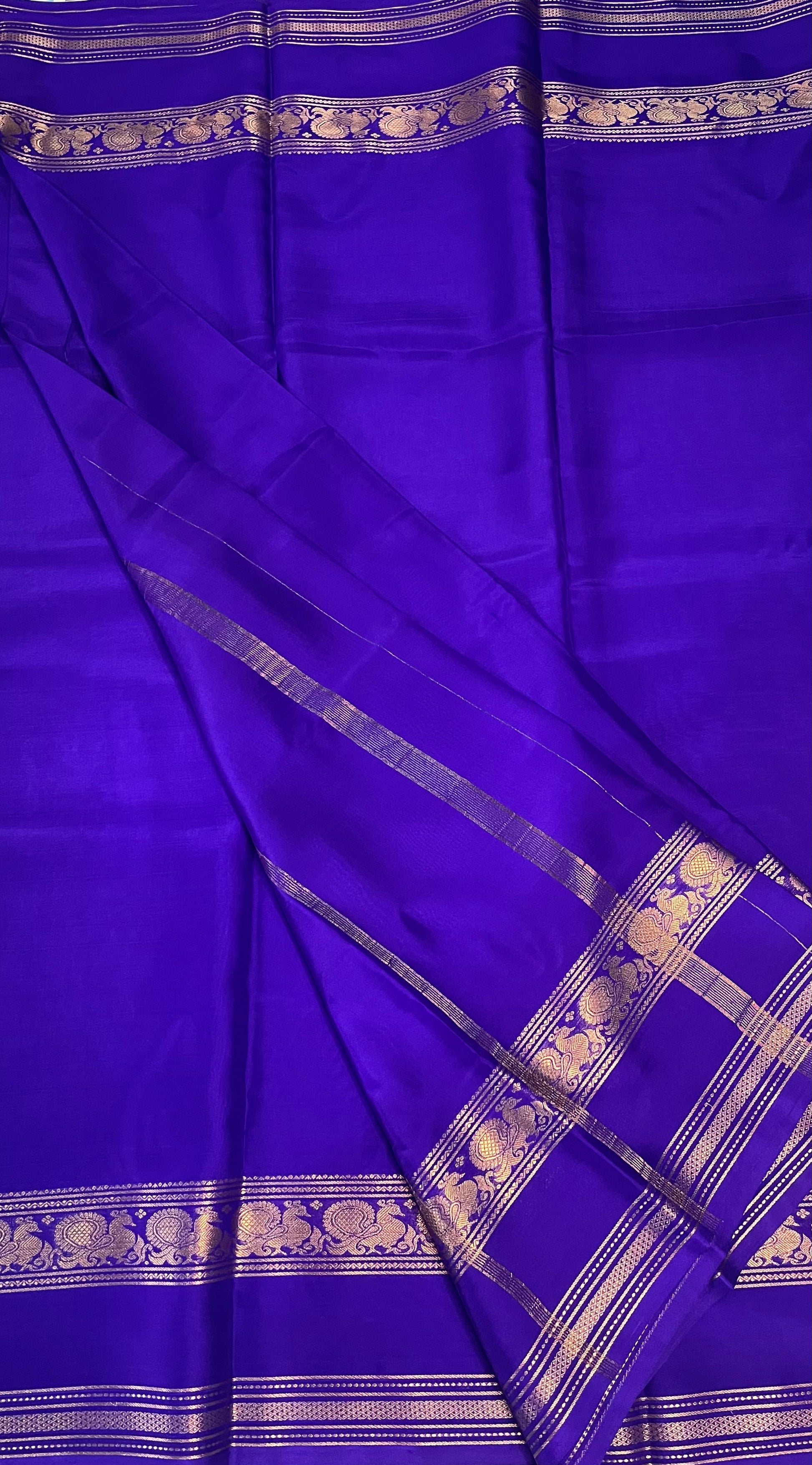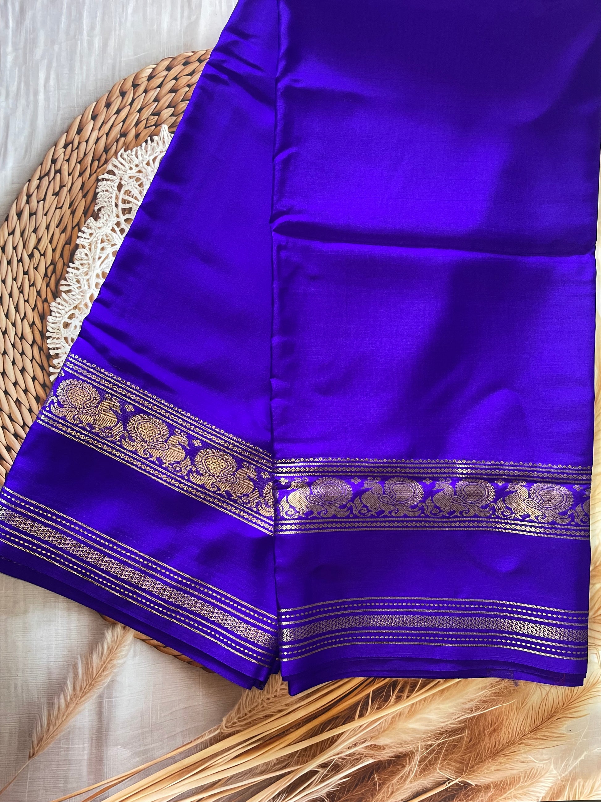 Turn heads with this elegant Crepe Mysore Silk Saree, crafted from soft, flowy silk with a lightweight 100 GSM finish. making it perfect for graceful draping.