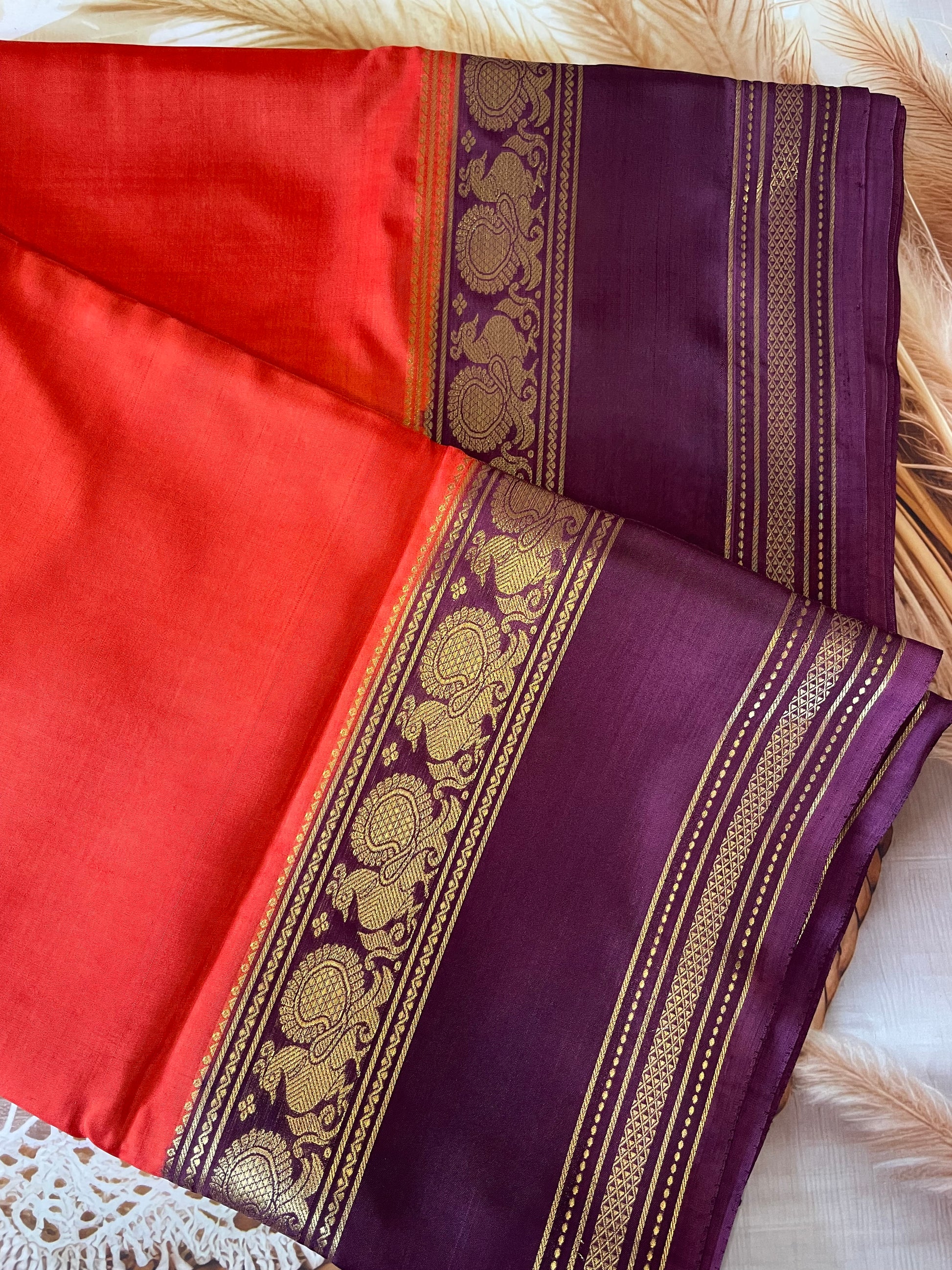 Turn heads with this elegant Crepe Mysore Silk Saree, crafted from soft, flowy silk with a lightweight 100 GSM finish. making it perfect for graceful draping.